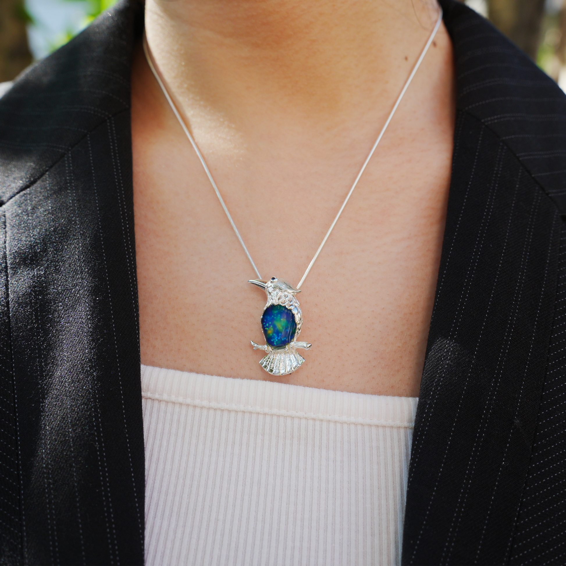 925 Silver Bird Pendant Brooch | Enamel Celestial Jewelry | Nature Gift for Her