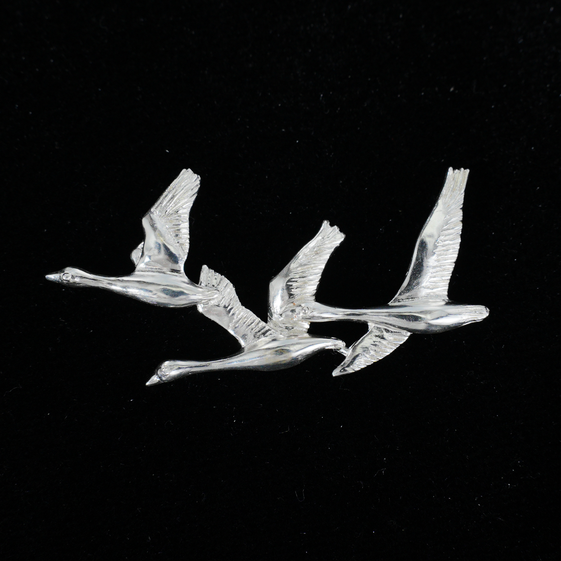 925 Silver Flying Geese Brooch Pendant | Handmade Bird Jewelry | Gift of Loyalty & Reunion for Her