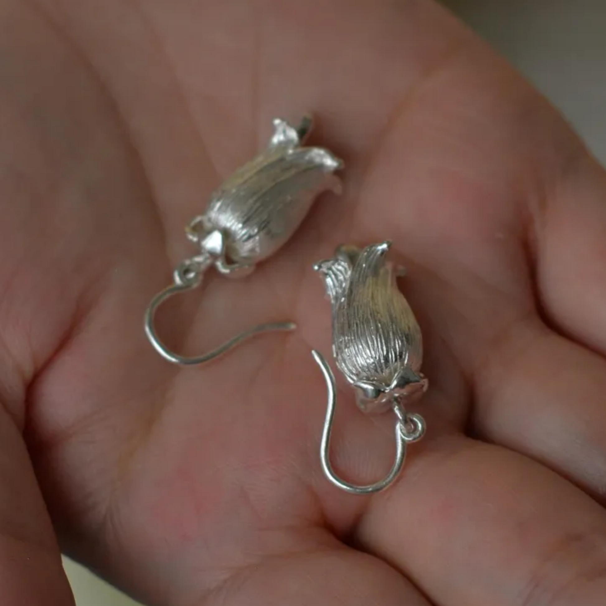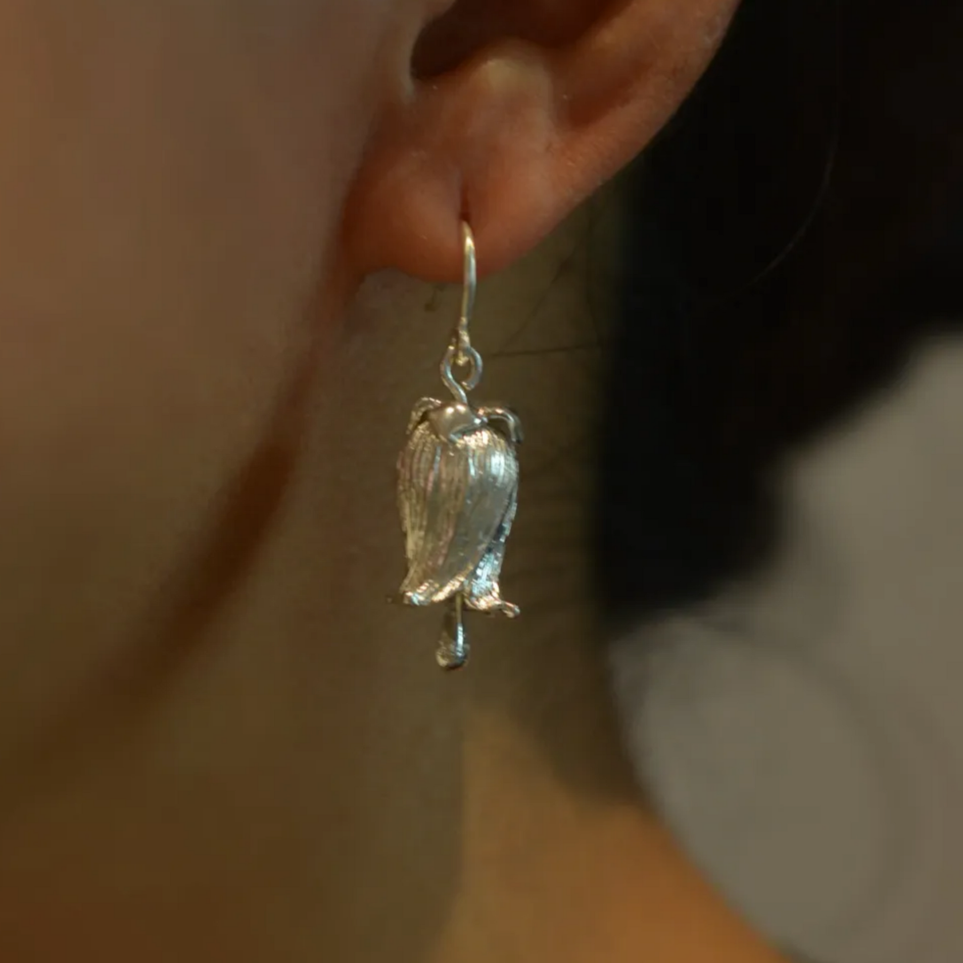 Each piece — whether the dangling earrings or pendant necklace — is handcrafted in 925 sterling silver, inspired by the French tradition of giving lilies of the valley on May 1st as tokens of love and good fortune.