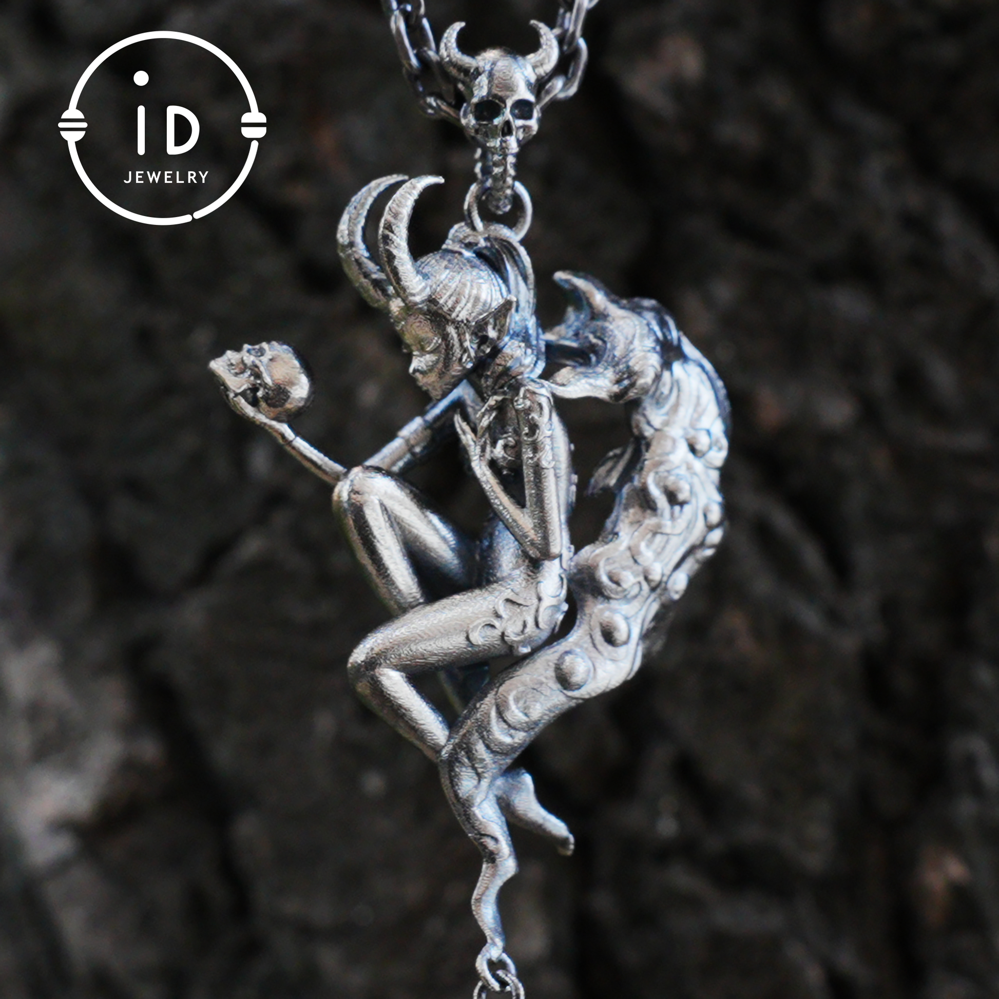 This handcrafted 925 silver pendant combines powerful symbolism with the aesthetic depth of dark elegance. The natural Lodolith crystal carries a fascinating inner landscape and reminds us of the interplay between reality and illusion. The oxidized silver figure – half human, half myth – gives the piece a strong totemic presence. As a talisman, it supports self-reflection and healing through the silent reflection of the inner self.