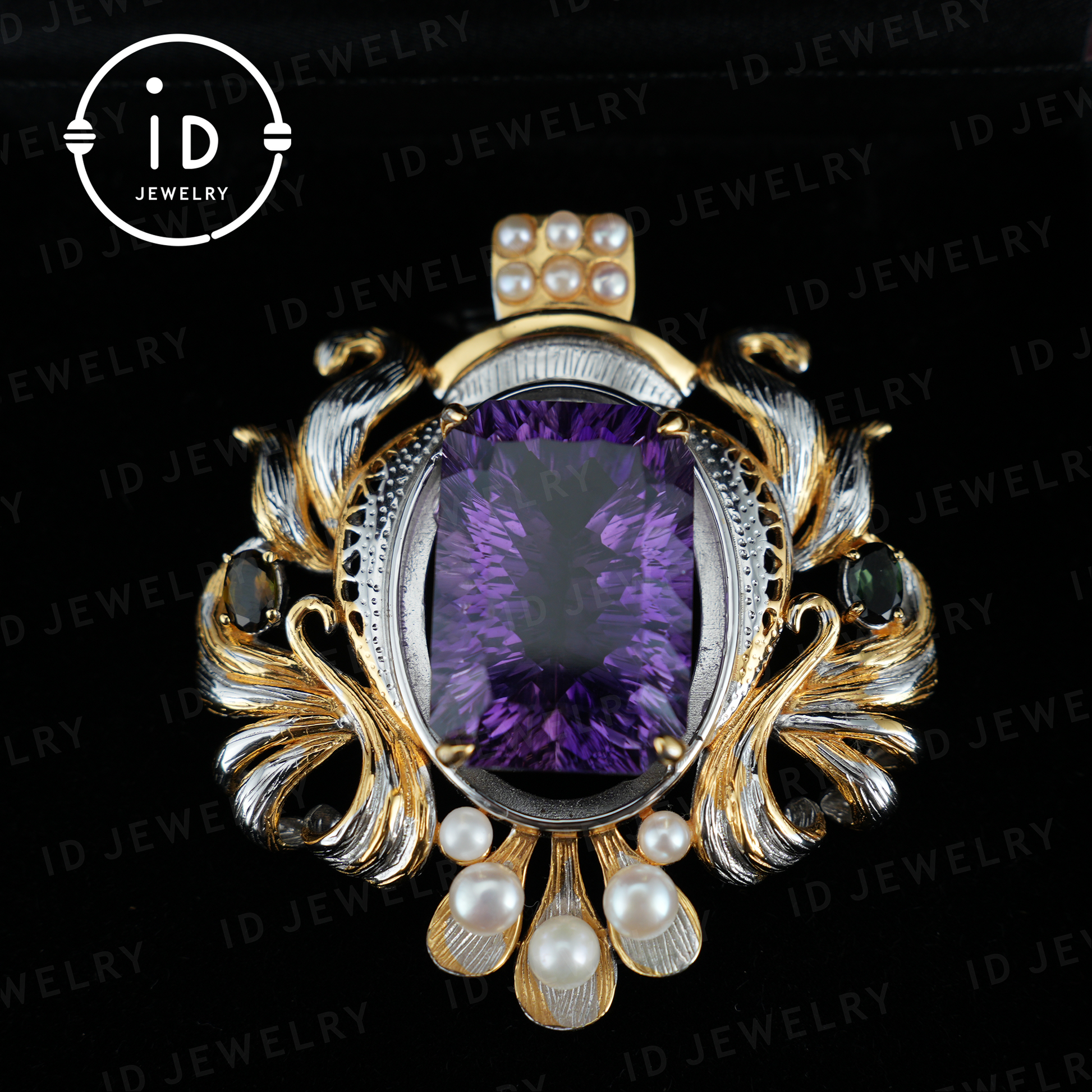 Antique Amethyst Pendant| Baroque Jewelry| Vintage Necklace| Handmade Silver Gold-Plated| Luxury Gemstone Pendant| Women’s Gift| Art DecoF0046