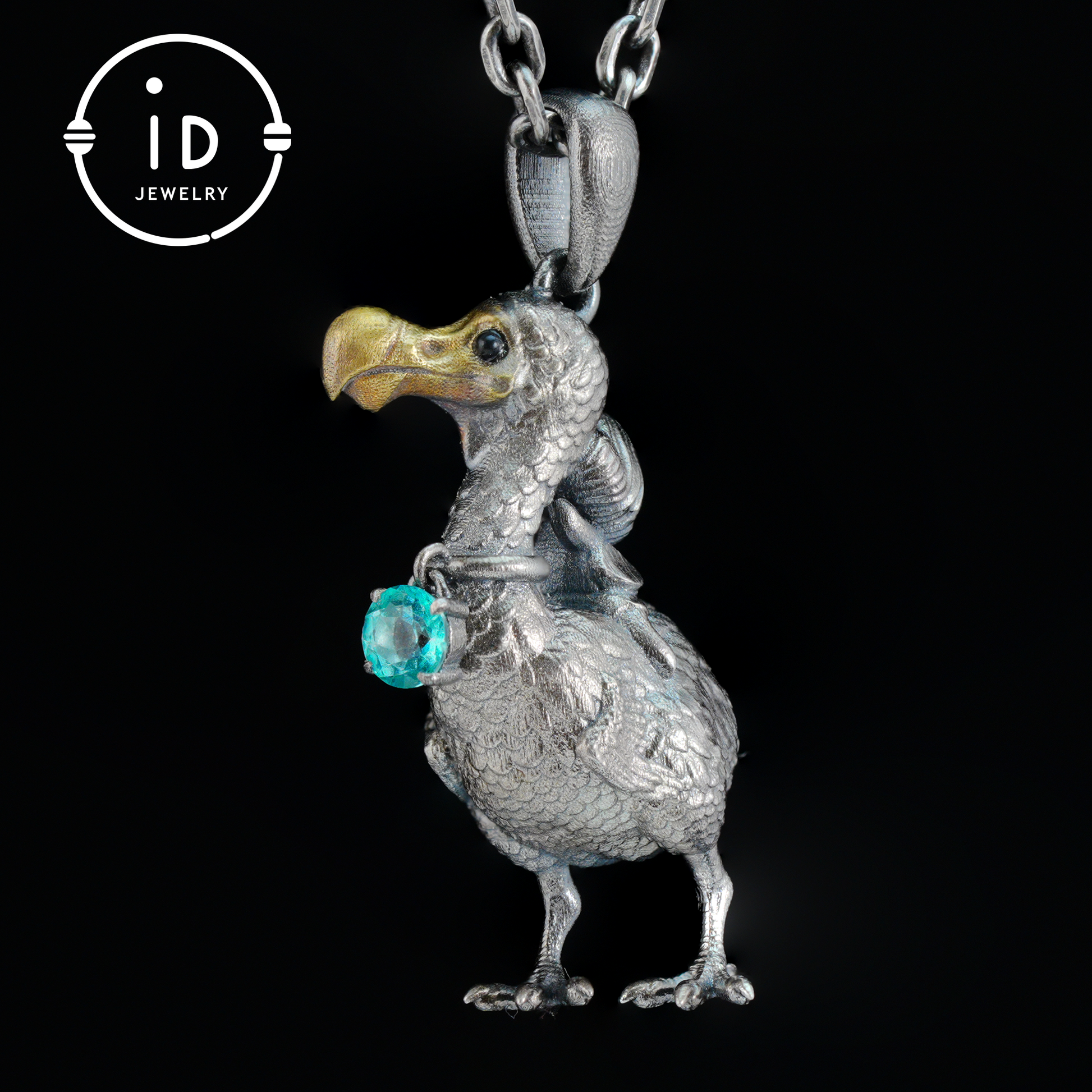 This finely crafted pendant features a dodo bird made of oxidized 925 silver carrying a small girl figure on its back — together they hold a blue zircon as a quiet light for their journey. Blending fairytale symbolism with emotional depth, it becomes a gentle talisman for those in times of change, reflection, or quiet courage.