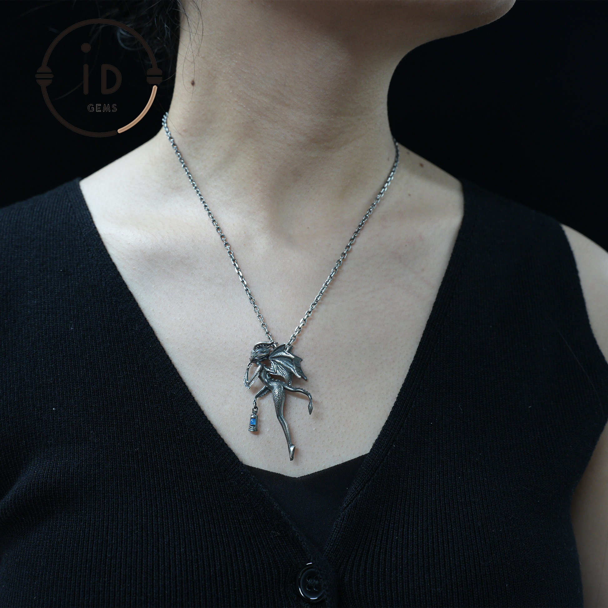 🧚♀️ This pendant transforms the fantasy dragon maiden into reality, blending finely crafted 925 silver with green chalcedony, granting the wearer courage to cross the night with a beauty that is both gentle and strong.