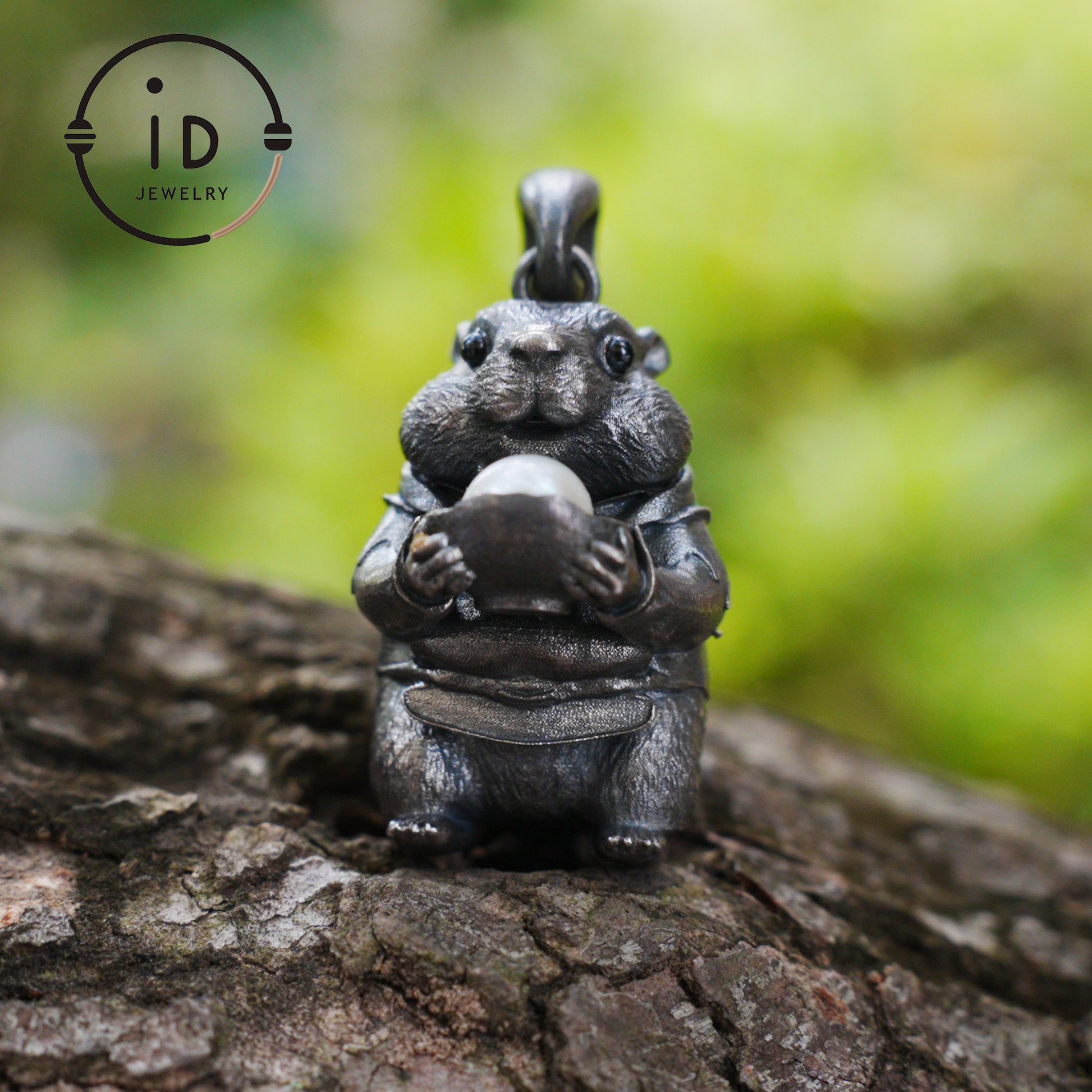 Hamster Pendant with Pearl, Whimsical Animal Totem Amulet, Handcrafted Fairy Tale Jewelry, Symbol of Care and Gentle Devotion