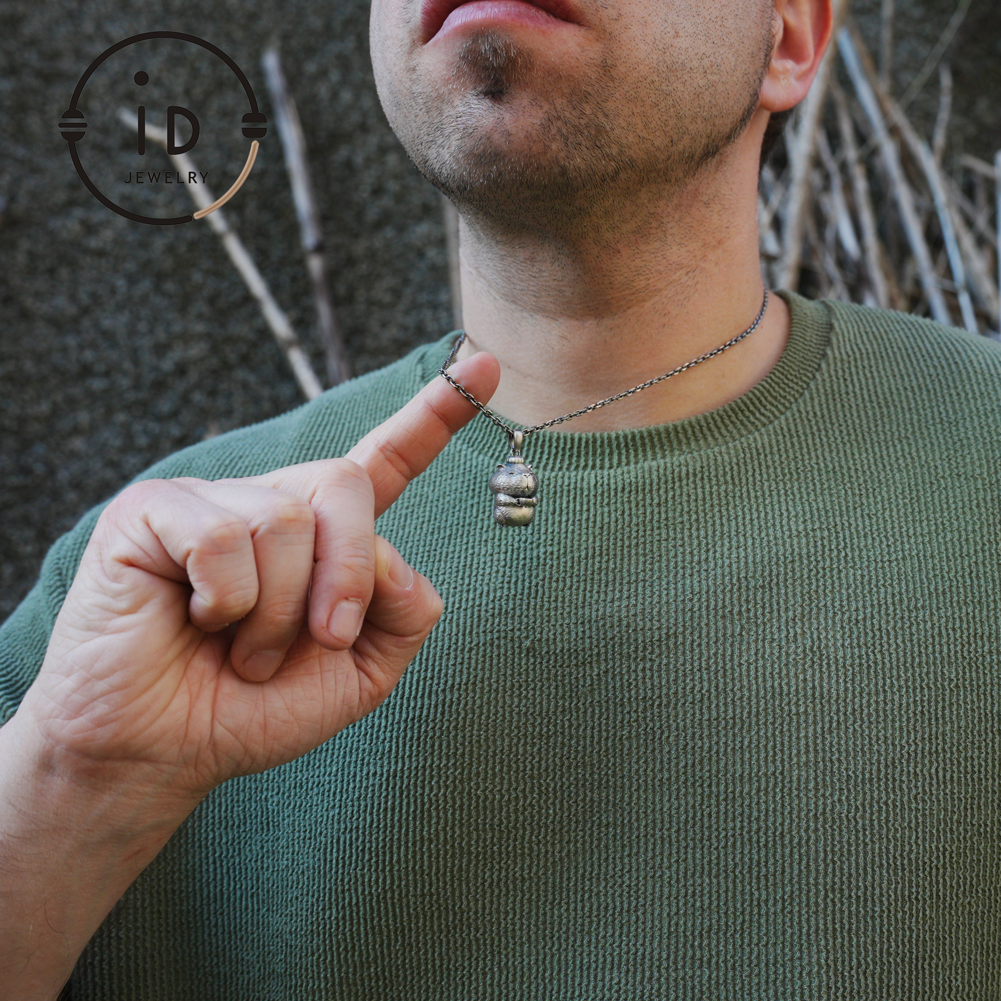 Oxidized Silver Hamster Pendant Handmade Totem Jewelry Animal Charm Necklace Gift for Her Zen Style Talisman 925 Sterling Silver