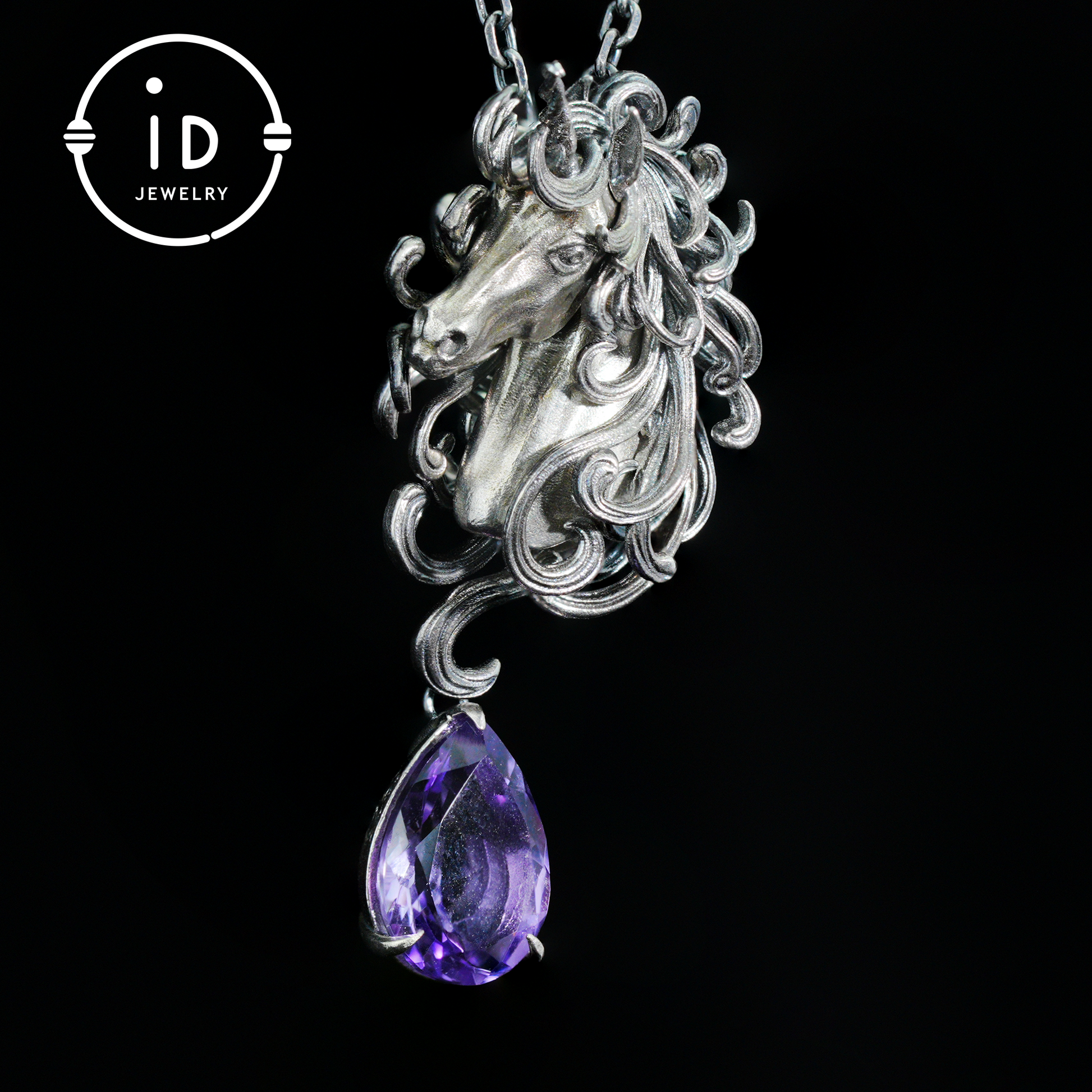 Unicorn Necklace with Amethyst Drop – 925 Sterling Silver Mystical Pendant – Fantasy Spirit Animal Jewelry for Women