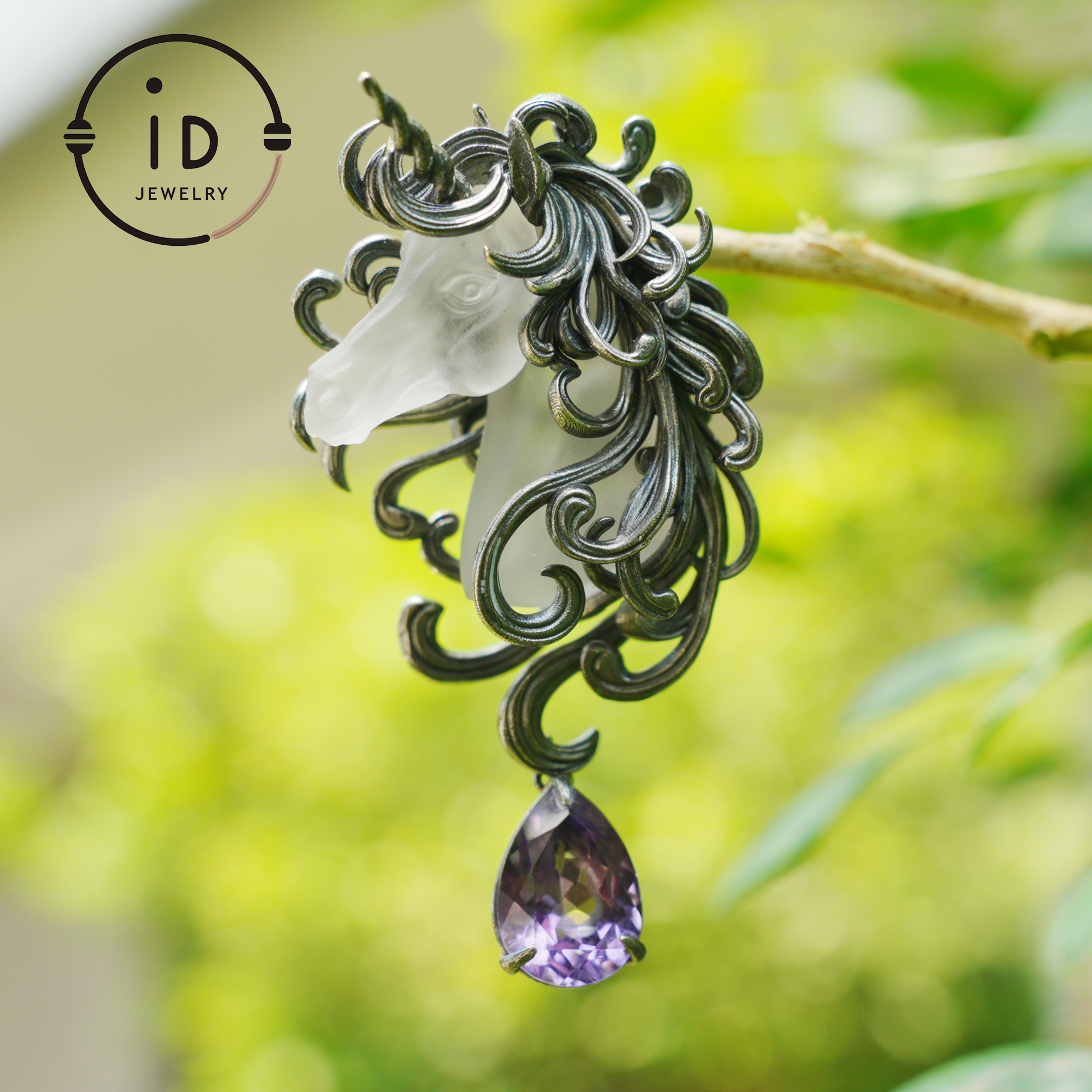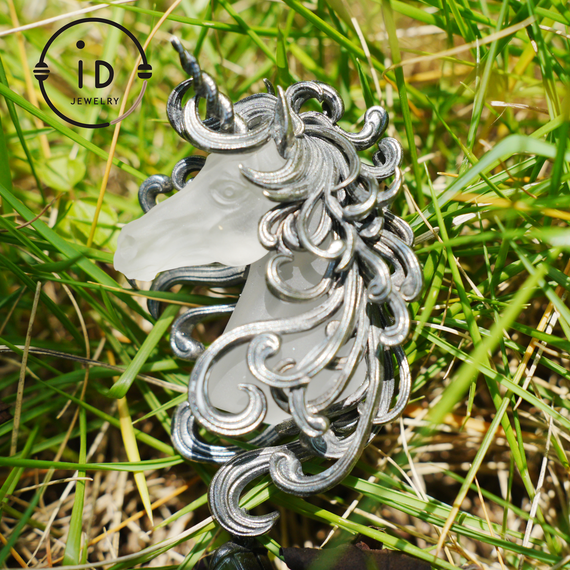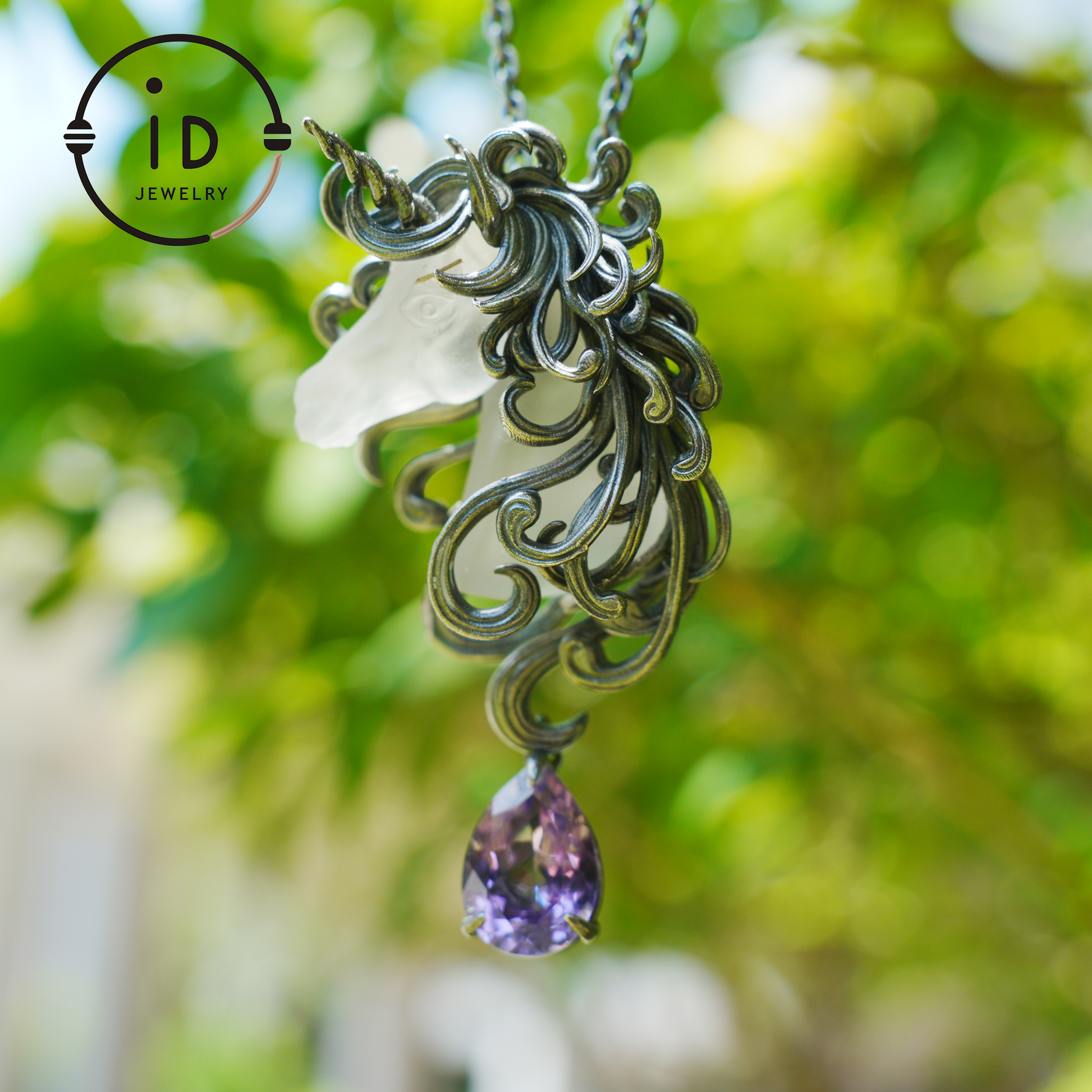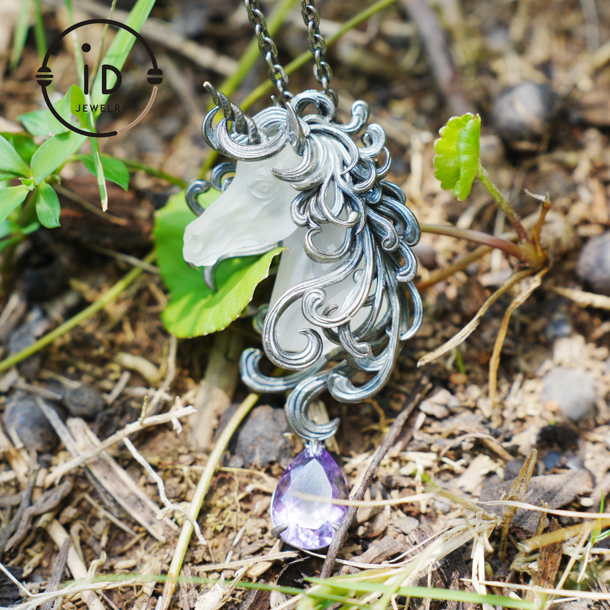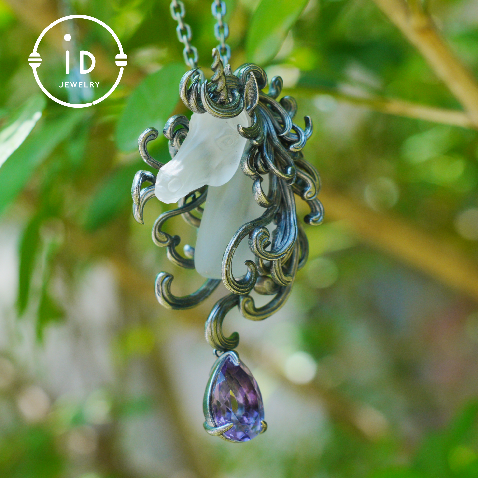 Night falls like water — an unicorn slowly emerges from moonlight. Its forehead horn glitters like unmelted morning frost, the mane sculpted by sea wind into flowing ripples; a purple “moon tear” hangs at the chest and gently swings with each step. It does not dazzle with force but protects with tenderness — reminding the wearer to stay clear and brave in the noise: trust your intuition and believe light will come when needed. ✨🌙