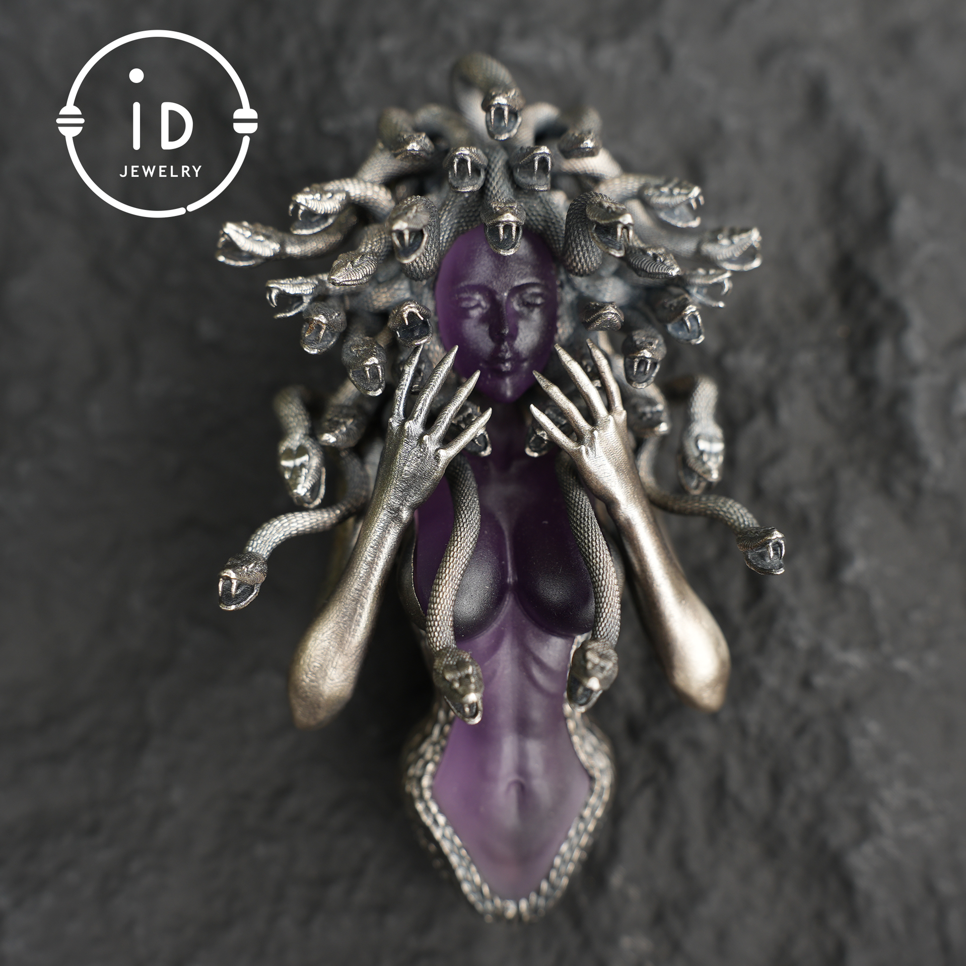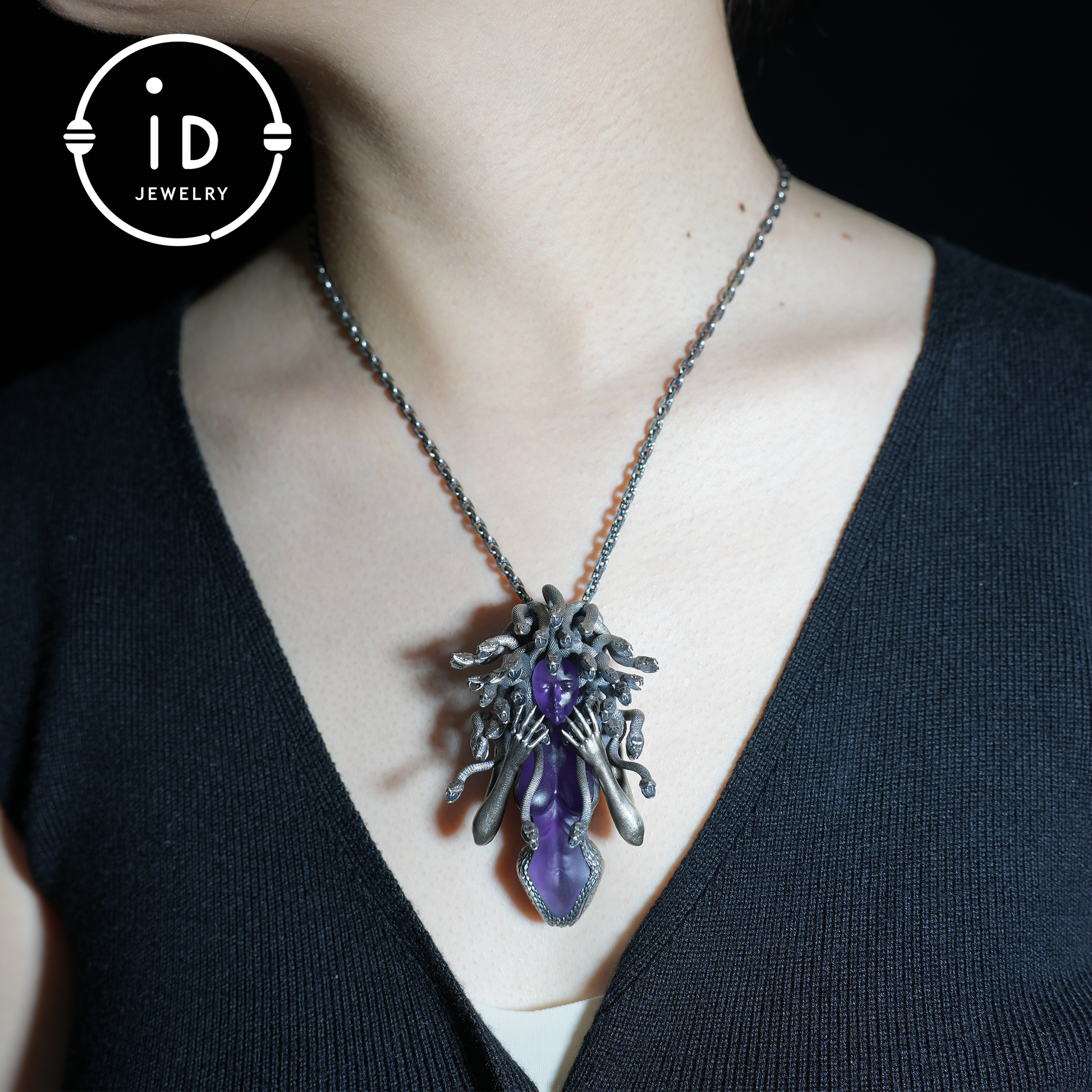 Amethyst Snake Pendant | Gothic 925 Silver Sculpture | Mystical Halloween Gift for Her