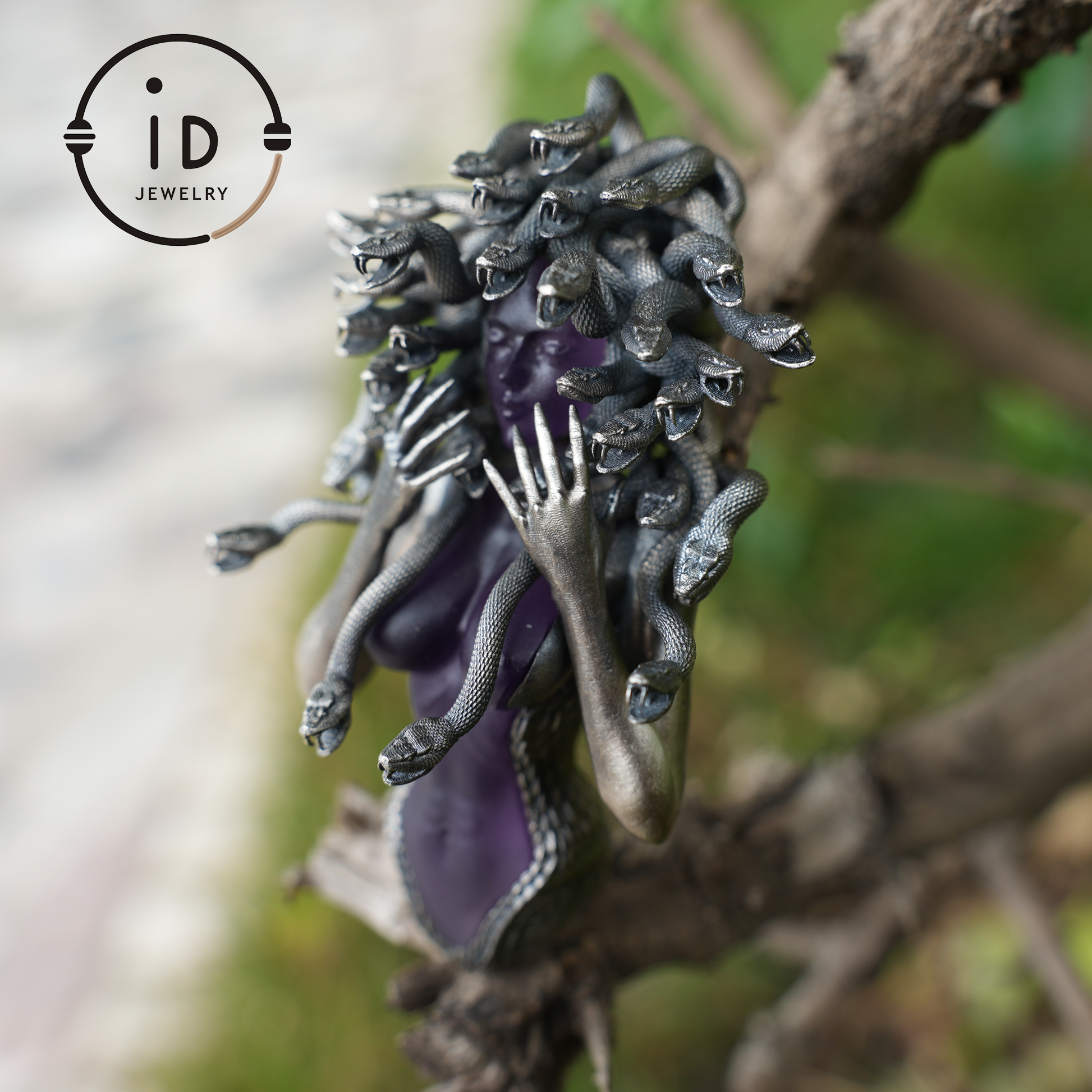 Material: Handgeschnitzter Amethyst, oxidiertes 925 Sterling Silber