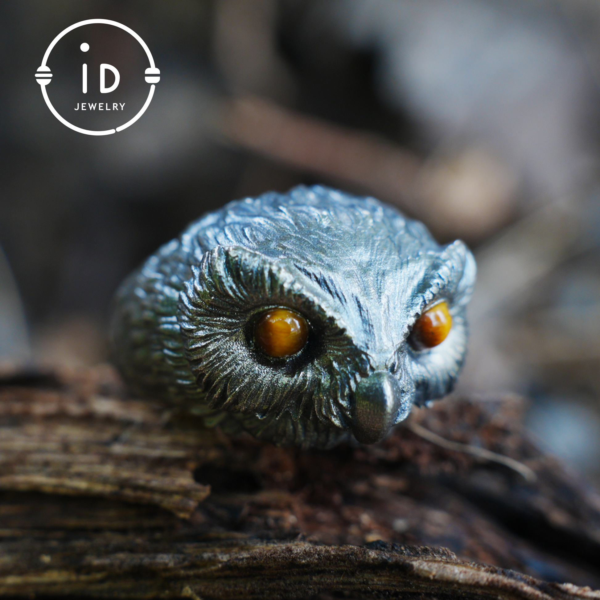 The owl shape symbolizes clarity in darkness, the tiger eye stands for protection, fearlessness and inner strength, while the oxidized silver embodies the depth of the night.