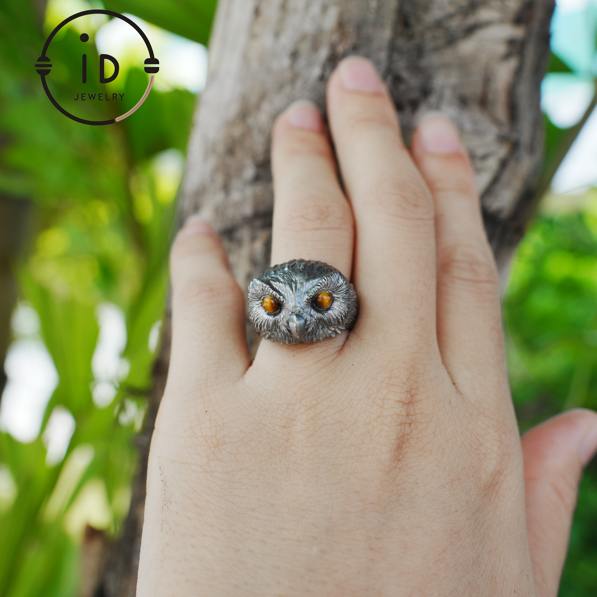 925 silver owl ring with tiger eye, gothic animal jewelry, handcrafted talisman ring, gift for men birthday Christmas