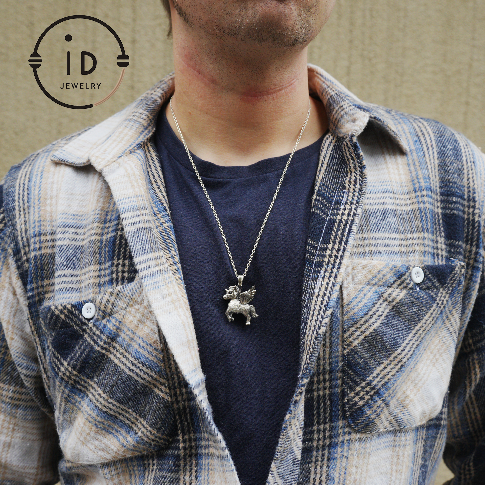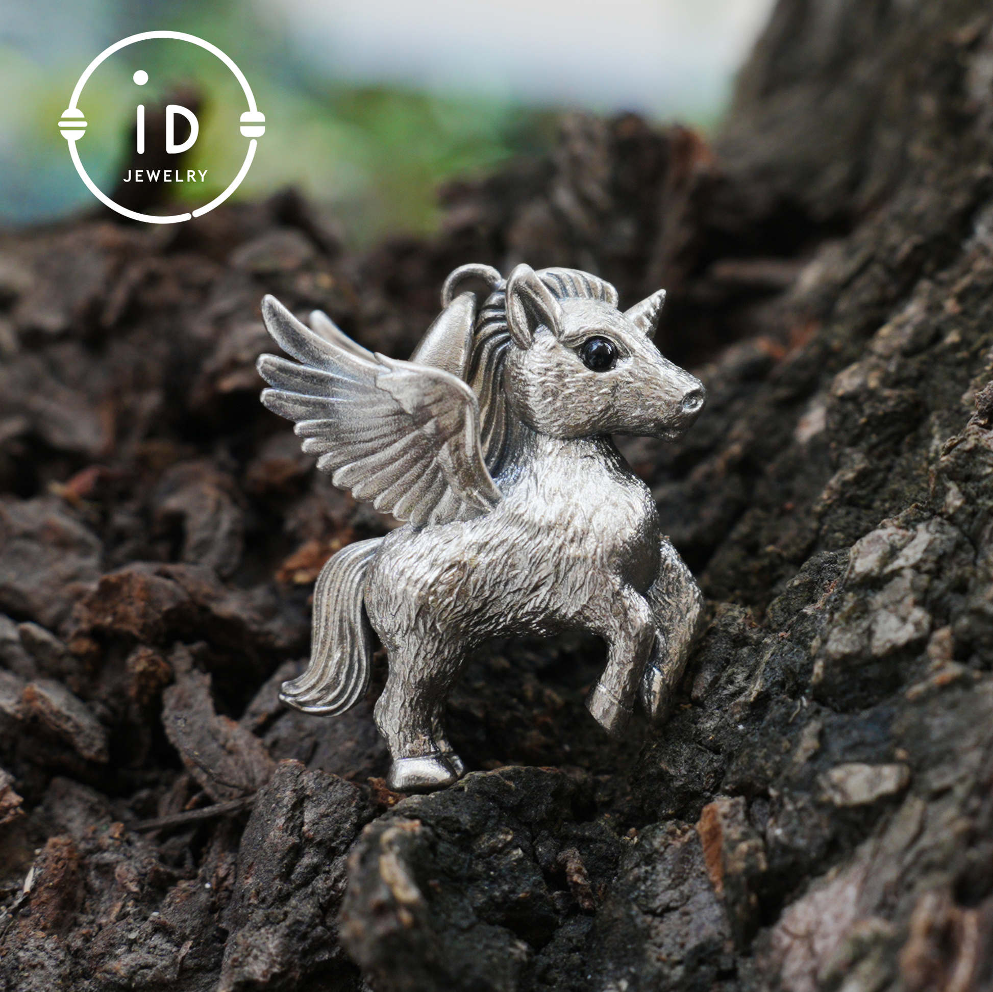 925 Silver Unicorn Pendant with Onyx Eyes, Pegasus Gothic Necklace Handmade Fantasy Jewelry, Gift for Women Birthday or Christmas