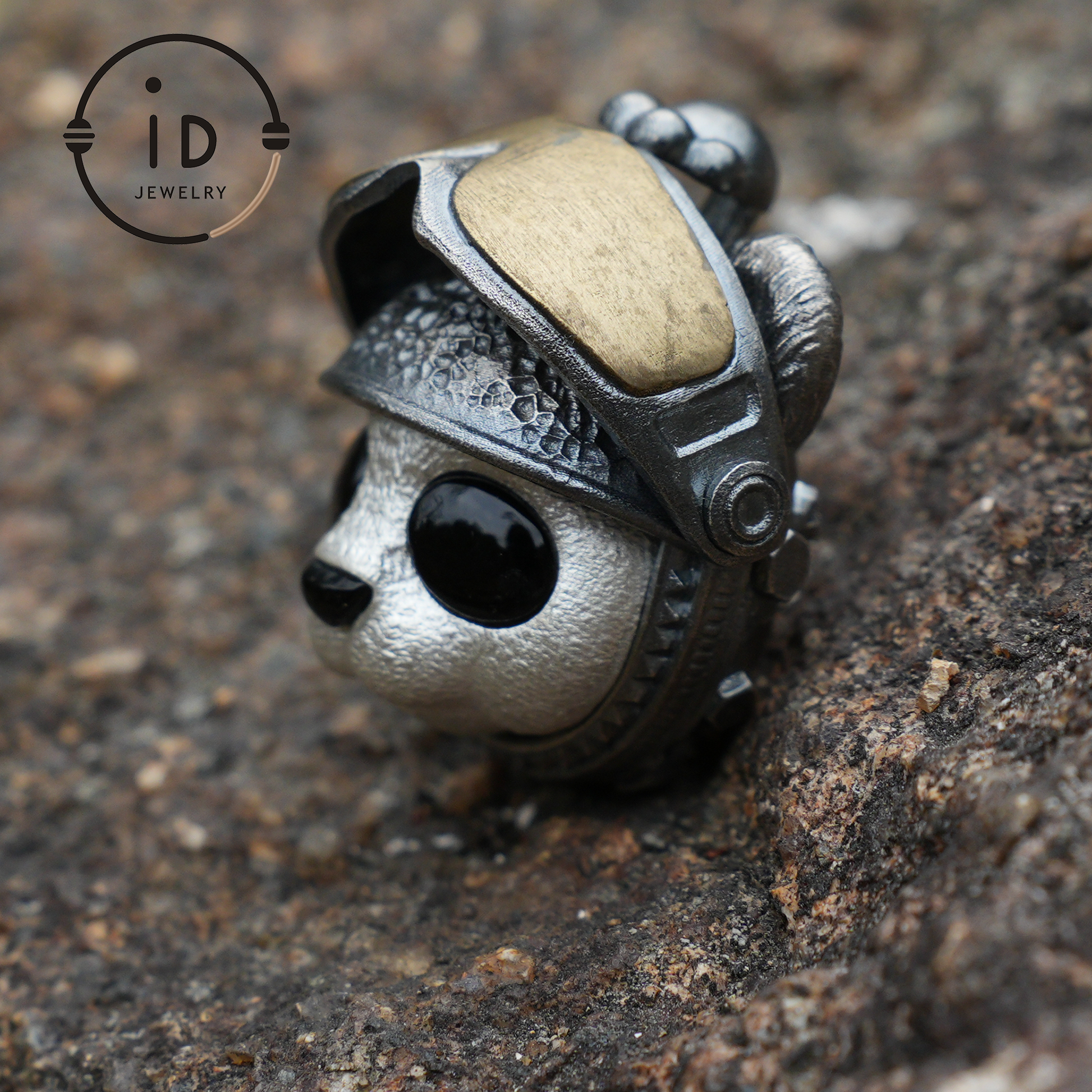 Hergestellt aus 925er Sterlingsilber, mit einem atemberaubenden Panda-Design und verspielten goldfarbenen Helmdetails. Das Stück ist fachmännisch handgefertigt, um Langlebigkeit und Eleganz zu gewährleisten.