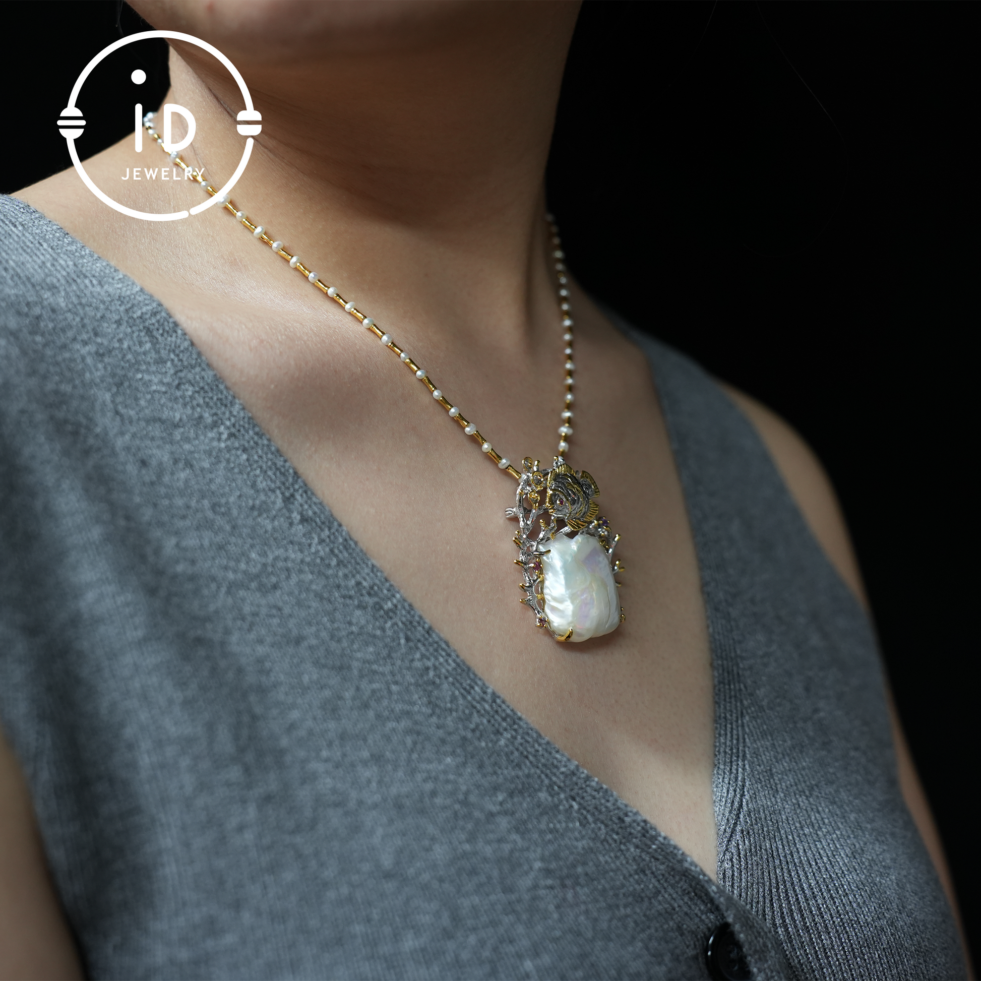 Barocke Perlen-Goldfisch-Brosche | Handgefertigter Kunstschmuck | Schmuck mit Meeresmotiven | Vintage-Design | Brosche & Anhänger-Kombination
