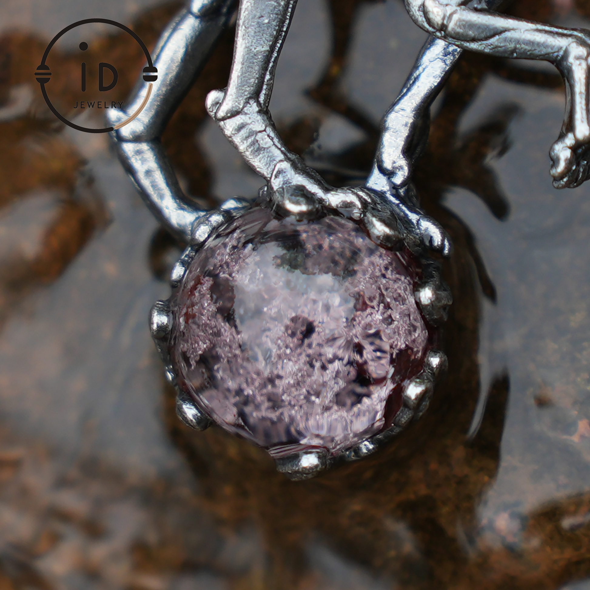 Entdecken Sie die dunkle Eleganz und Fantasy-Magie mit unserem handgefertigten Drachenanhänger aus 925er Silber mit einem geheimnisvollen Phantomquarz.