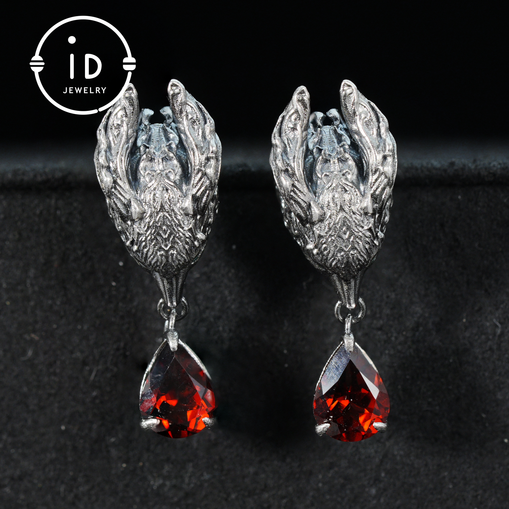 Oxidized 925 sterling silver, red garnet in teardrop cut