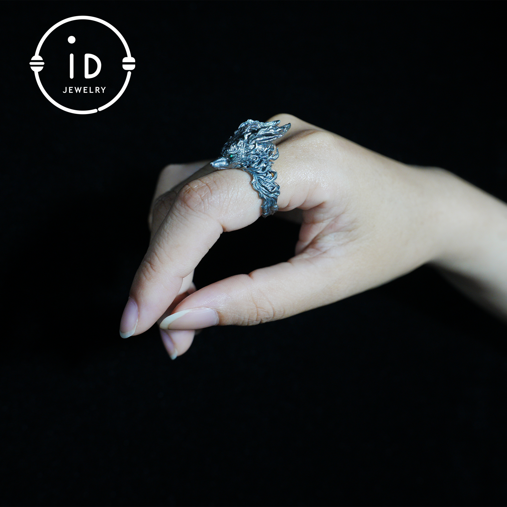 Fuchs Totem Ring mit grünen Zirkonaugen, Waldwächter Amulett, handgefertigter Tierschmuck, Mythisches Schutzsymbol