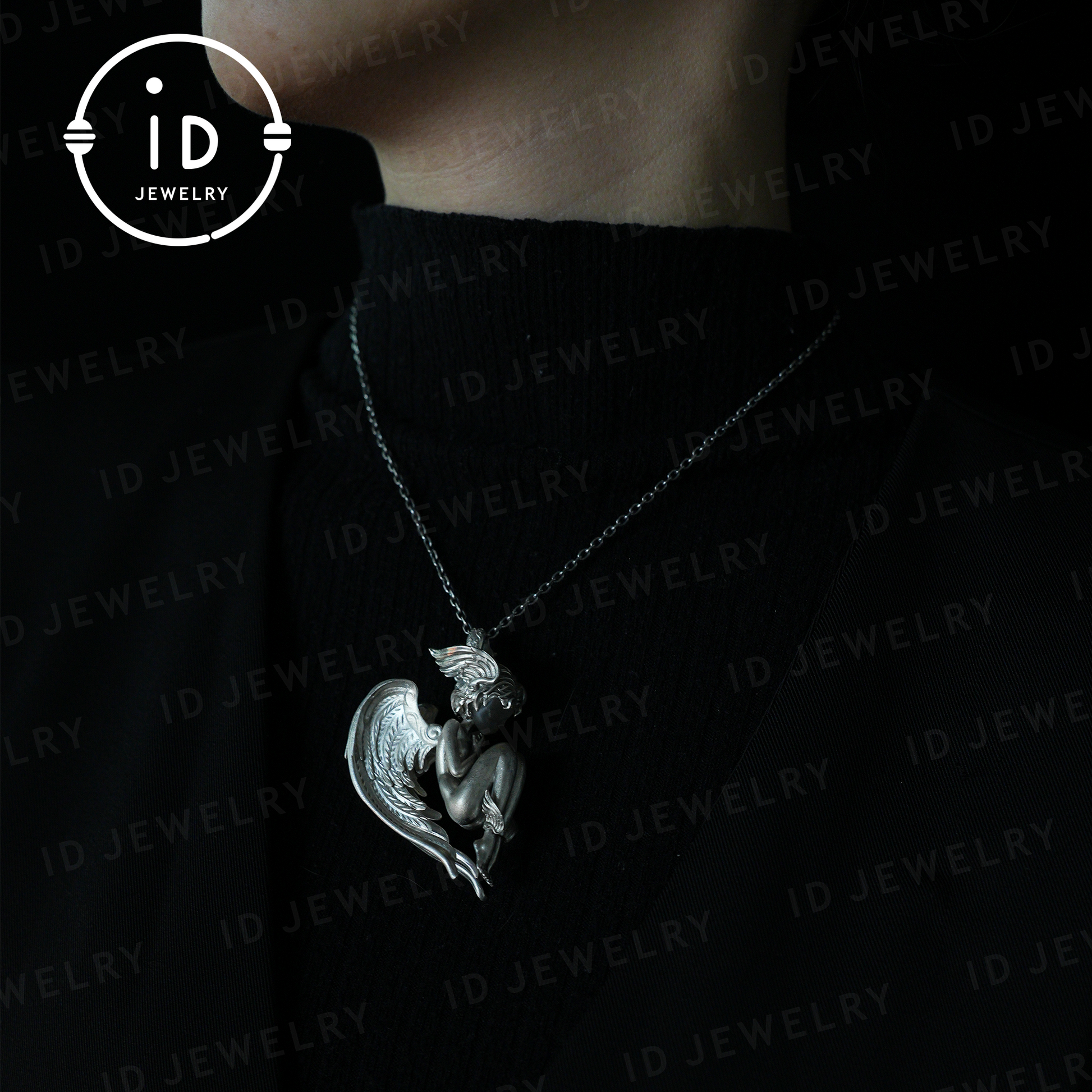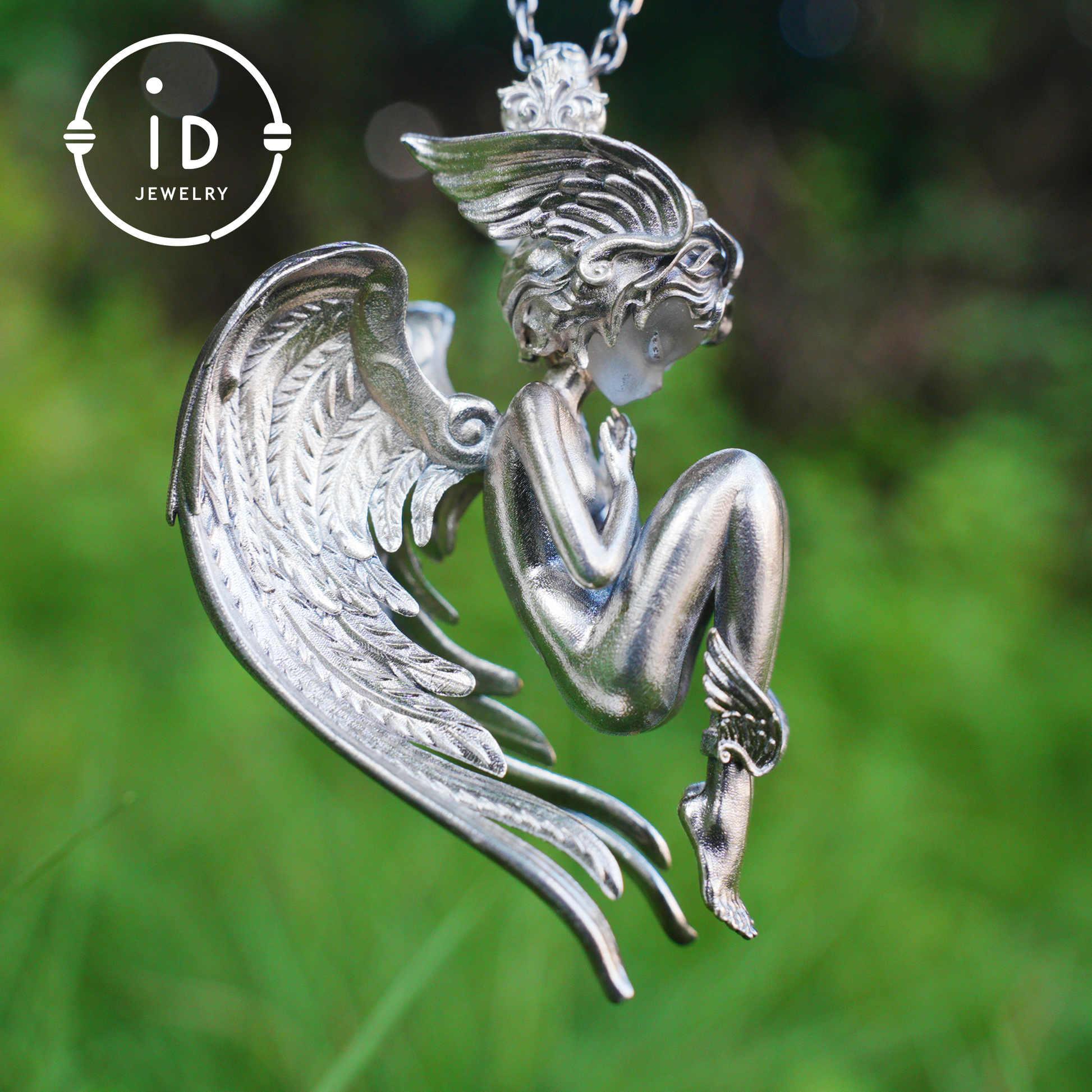 Handgefertigte Engelsfiguren-Anhänger | Gotische Skulptur mit Flügeln | Bergkristall | Mystischer Wächter