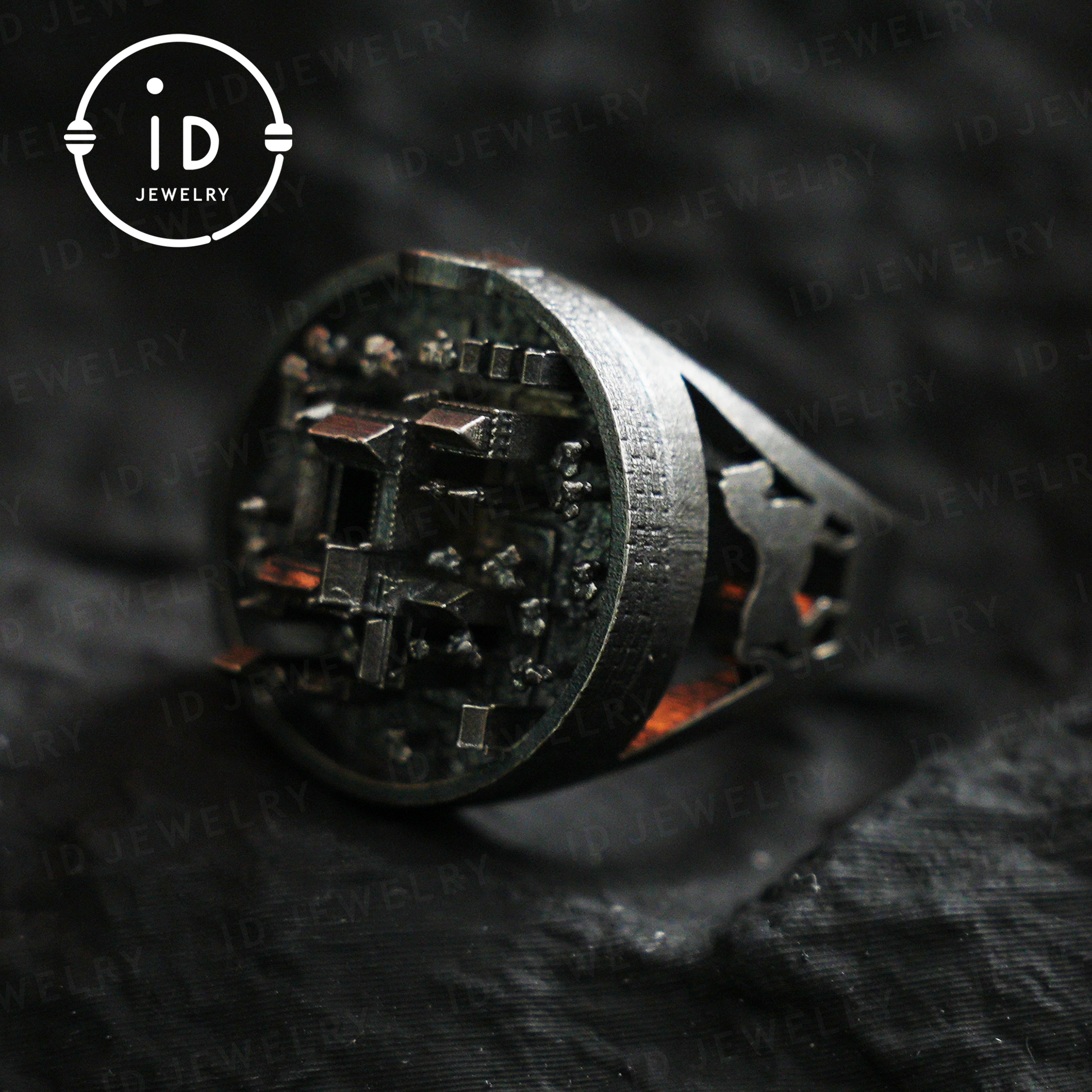 Handgefertigter Cyberpunk-Ring | Industrieschmuck | Mikrochip-Design | Gothic-Geek-Ring