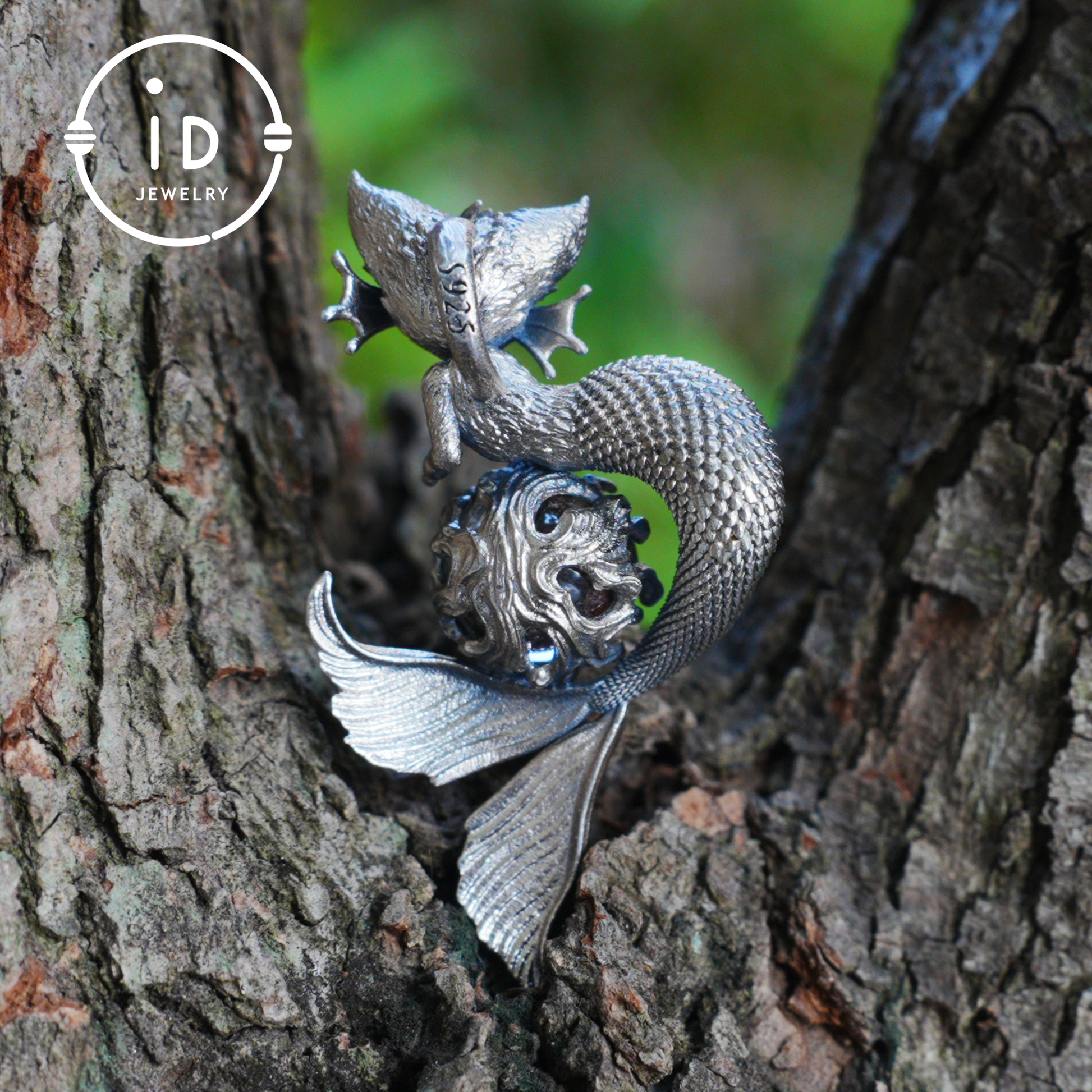 A talisman between myth and matter — this handmade pendant merges the playful form of a mermaid-cat with the natural energy of phantom quartz. Crafted in oxidized 925 sterling silver, it balances magical softness with silent symbolism. The center stone reflects inner layers of memory — like hidden truths suspended in time.