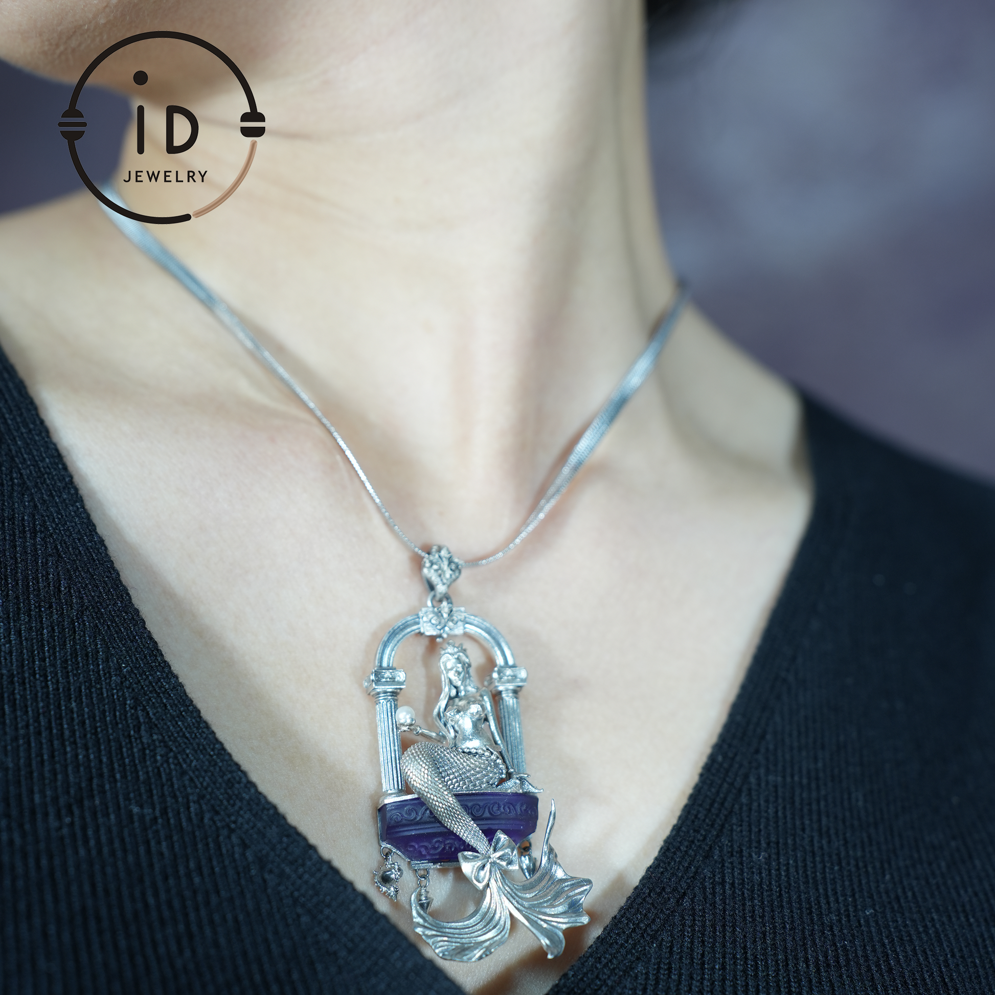 Unterwassergöttin Anhänger - 925 Sterling Silber, Amethyst, Meerjungfrau inspiriert, handgefertigter Fantasy Schmuck