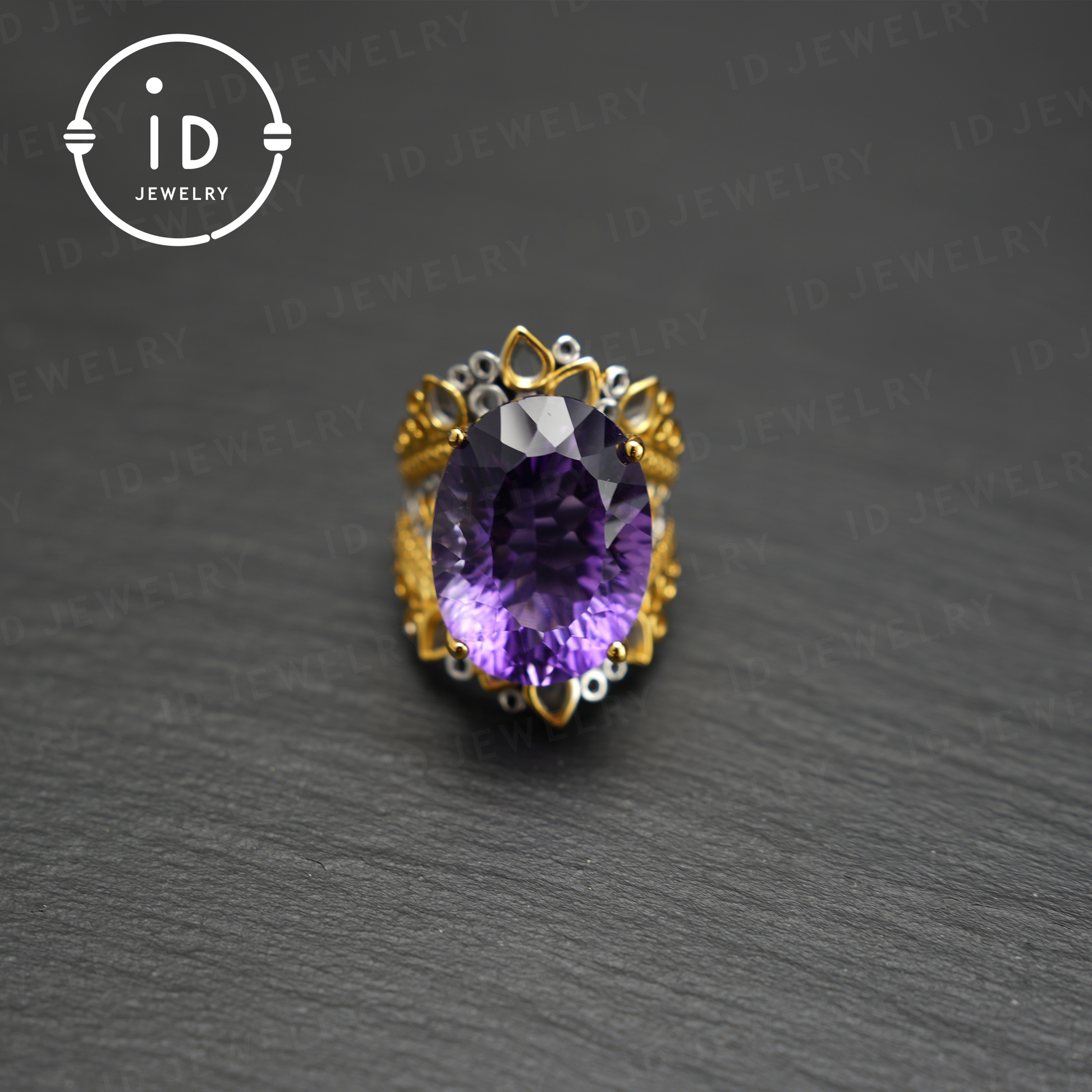 Natürlicher Amethyst Ring, Vintage Stil, 18K vergoldet, Statement Schmuck, Verlobungsring, Luxus Edelstein Schmuck, Geschenk für Frauen F0015