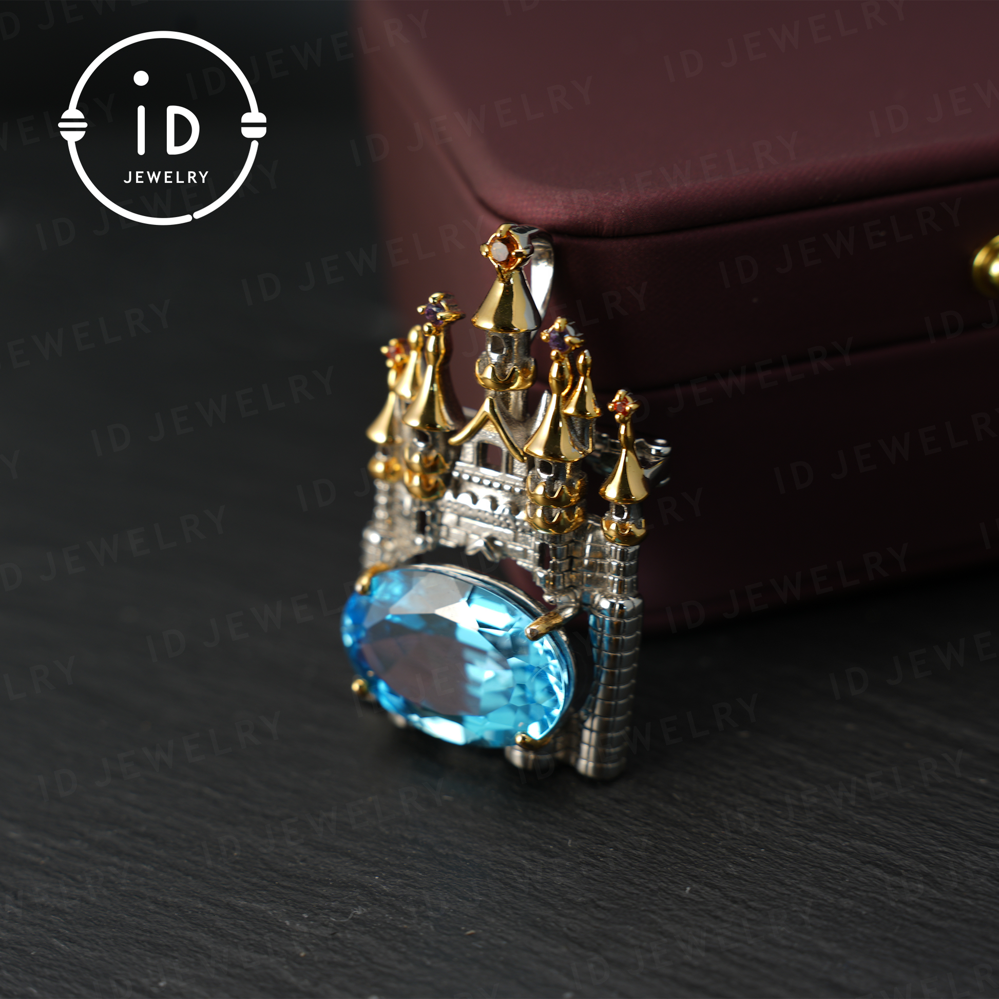 💎 Ein atemberaubender handgefertigter Anhänger, inspiriert von einem majestätischen Schloss, verziert mit einem funkelnden blauen Topas. Dieses Schmuckstück ist ein wahres Statement, das Eleganz und Raffinesse in einem luxuriösen Design vereint. Er kann sowohl als Anhänger als auch als Brosche getragen werden und ist somit ein vielseitiges Accessoire für verschiedene Anlässe. Perfekt für besondere Anlässe wie Verlobungen, Jubiläen oder als exklusives Geschenk für Liebhaber einzigartigen Schmucks.