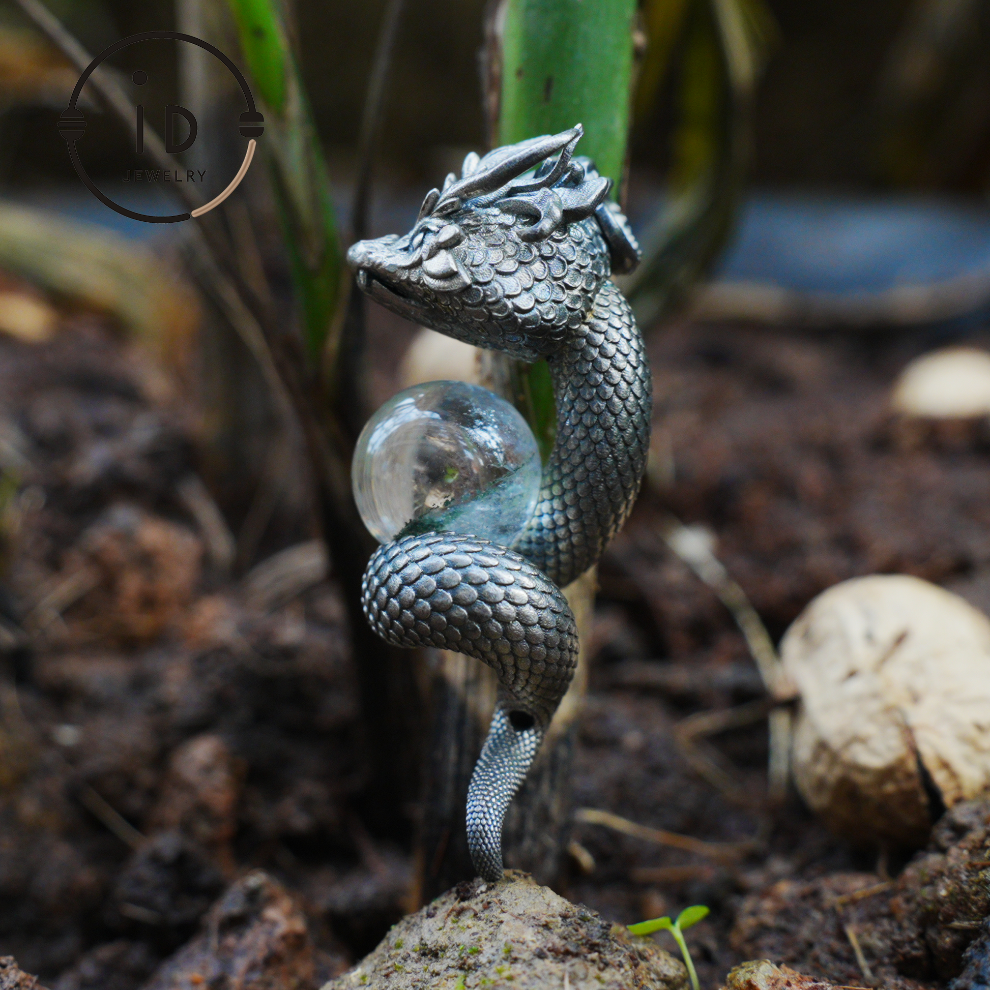Phantom Quartz Pendant 925 Silver Dragon Totem Necklace Gothic Style Handmade Gift for Her Birthday Christmas Mini Sculpture Talisman