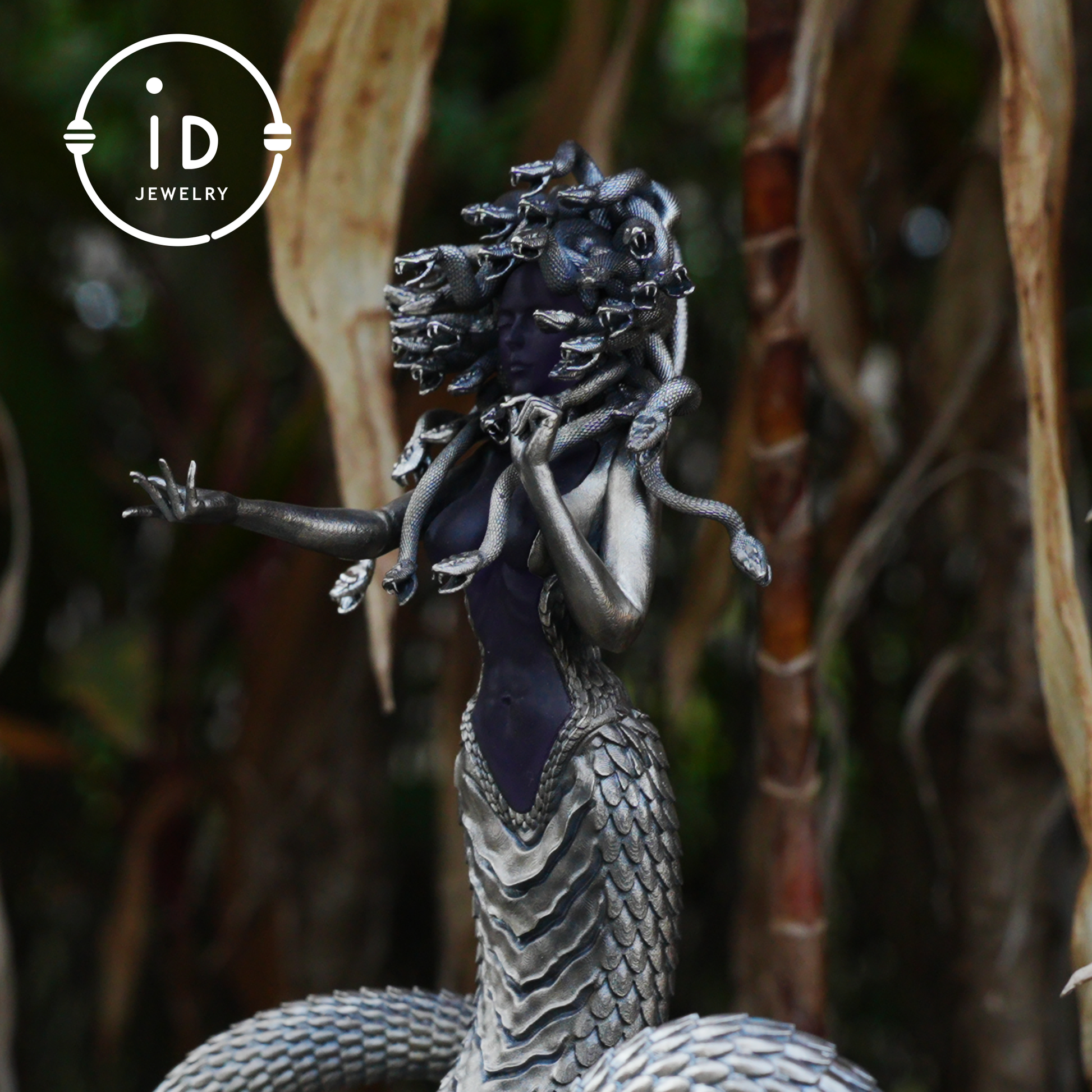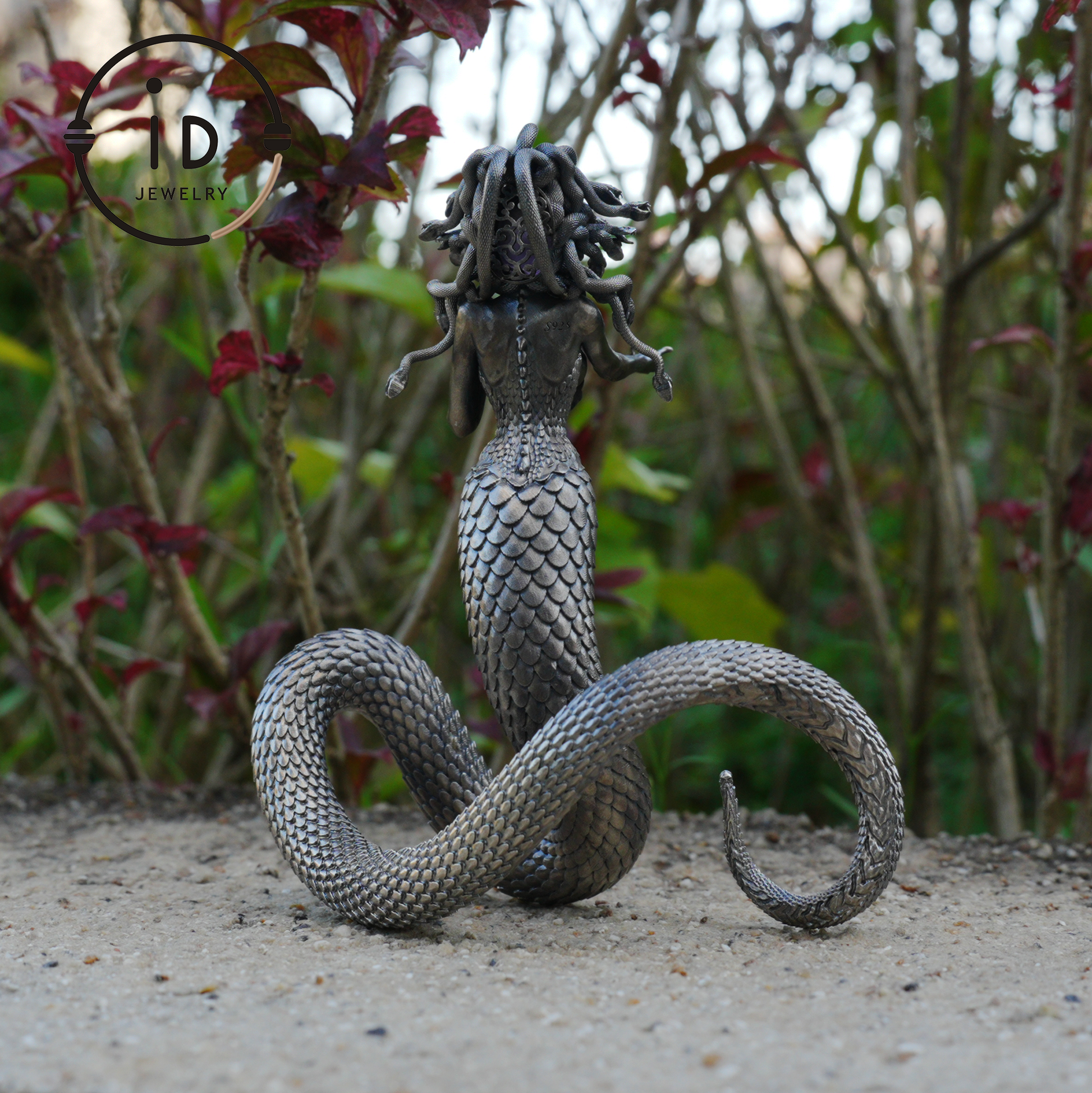 This extraordinary art object bridges two worlds – a wearable talisman and a decorative sculpture. Made of 925 silver and violet amethyst, it depicts an abstract snake woman with powerful presence. Whether worn as a striking pendant or placed as an energetic decor piece, this mythological form embodies transformation, inner power, and symbolic depth.
