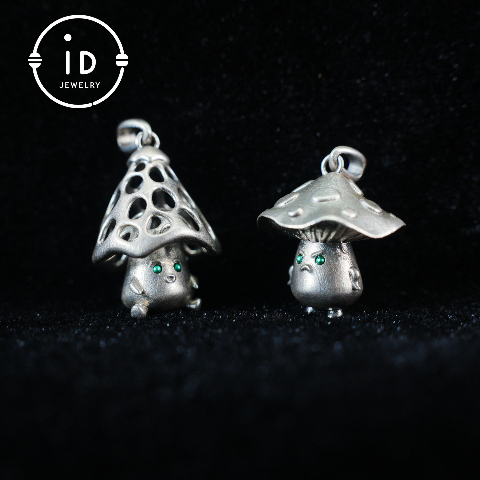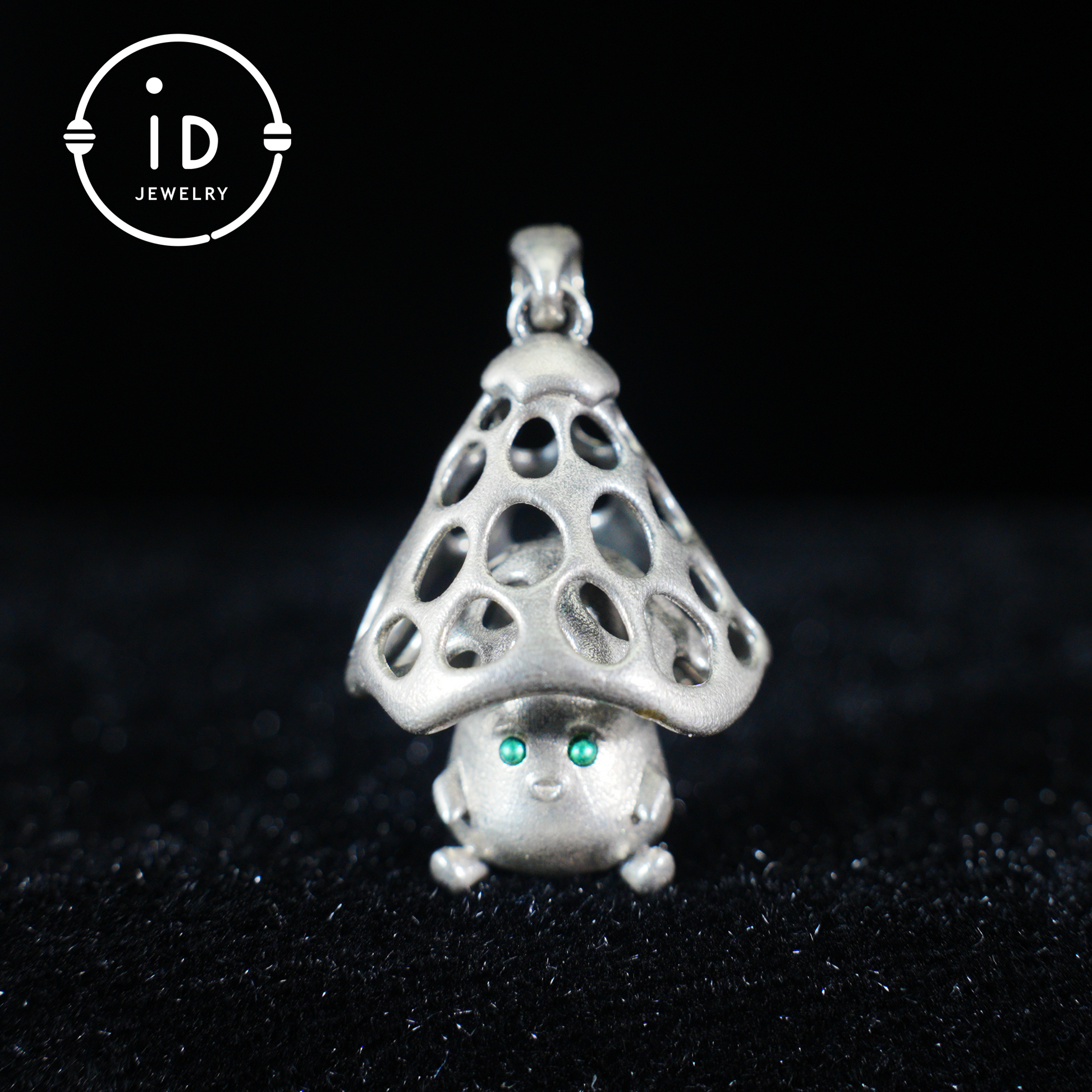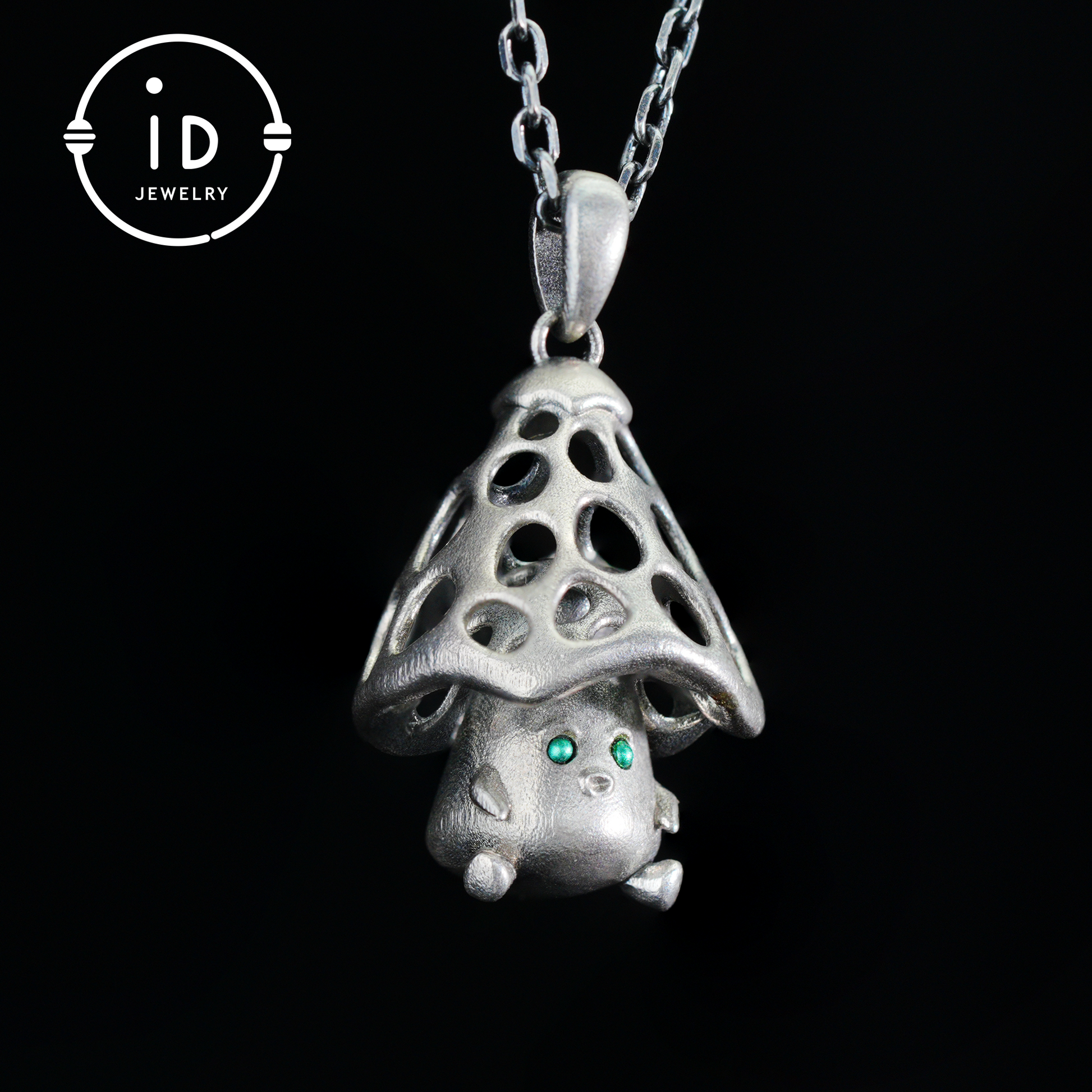 Pilzgeist-Anhänger aus Sterlingsilber – Waldwächter-Halskette mit grünen Zirkonaugen – Fairycore-Schmuckgeschenk für sensible Seelen