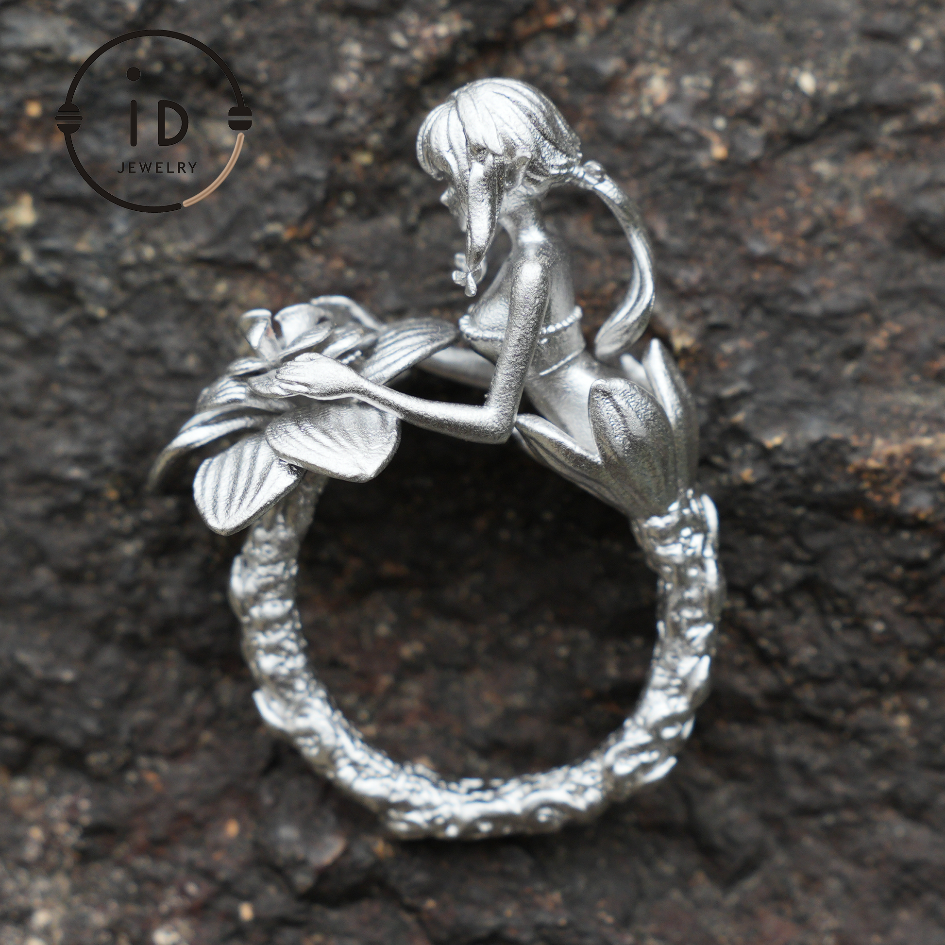 Vintage Feenring mit Blume | Handgefertigter Fantasy-Schmuck | Elegantes Design mit 925er Silber & Phantomstein
