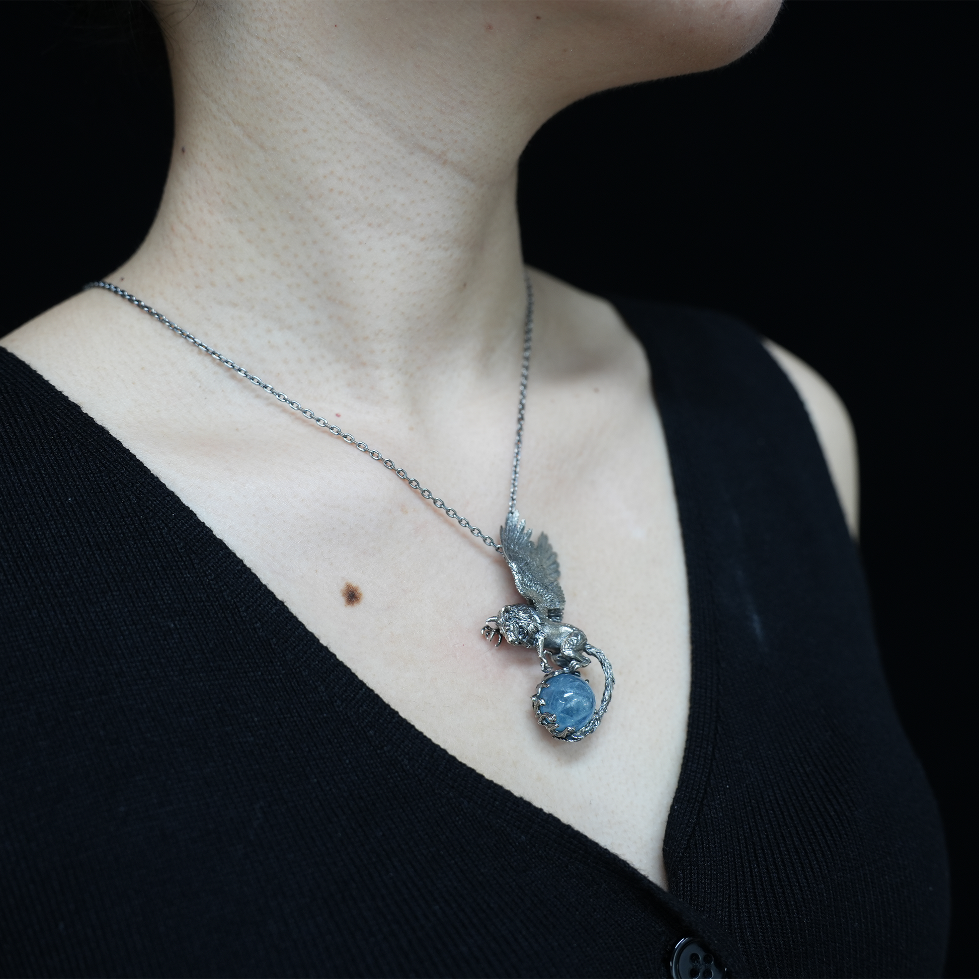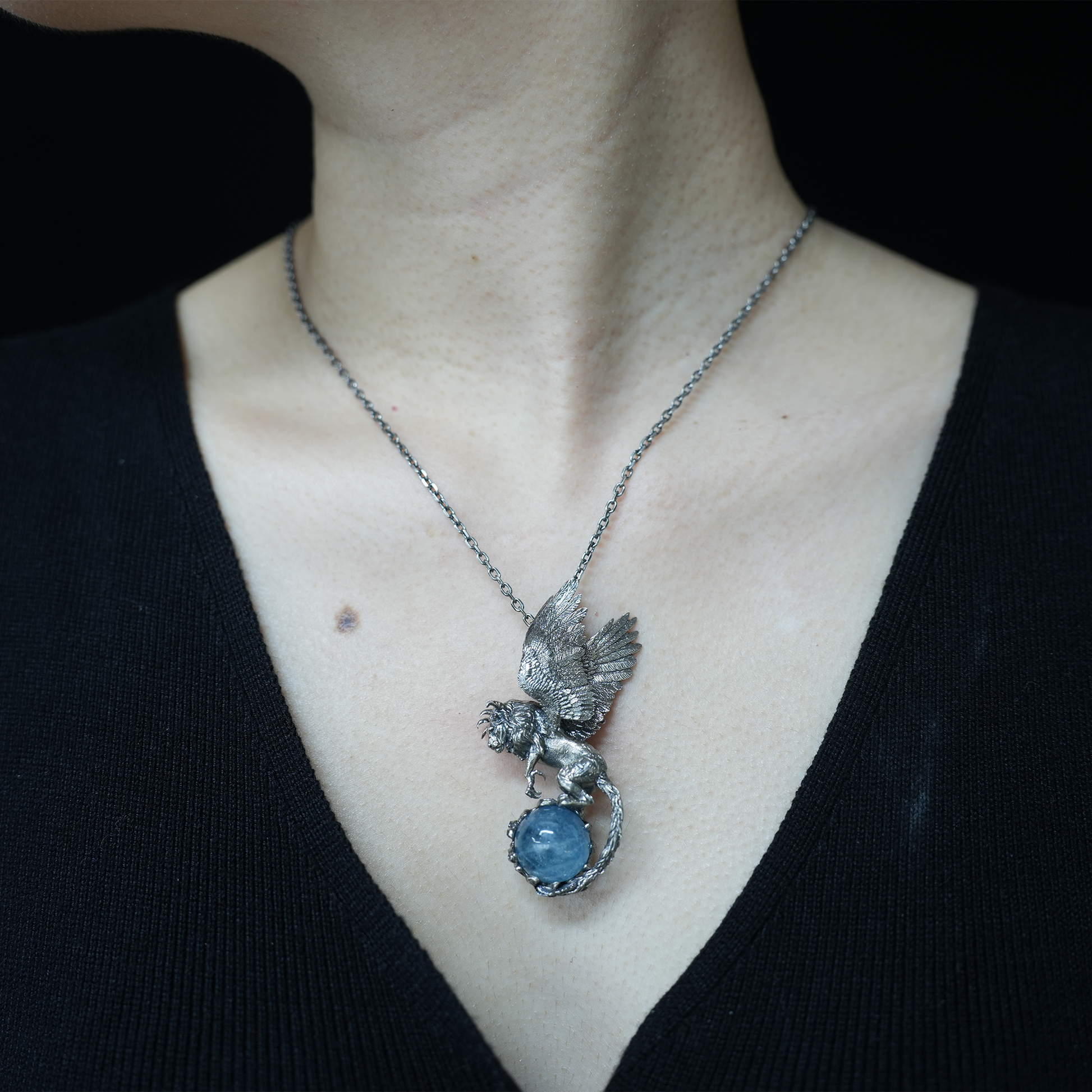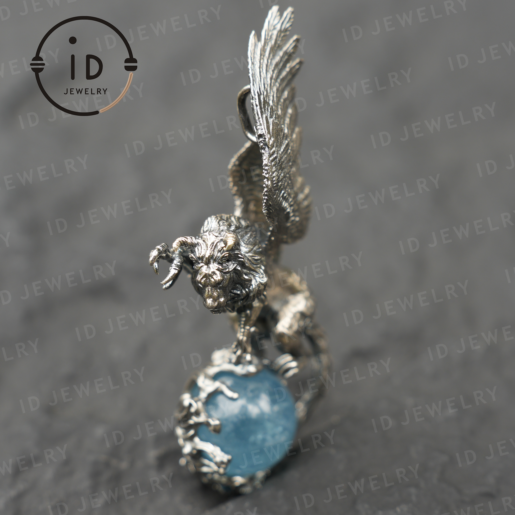 Geflügelter Löwenanhänger - Handgefertigter Schmuck aus 925er Sterlingsilber mit Aquamarin - Symbol der Weisheit und des spirituellen Schutzes - Geschenk für Sie