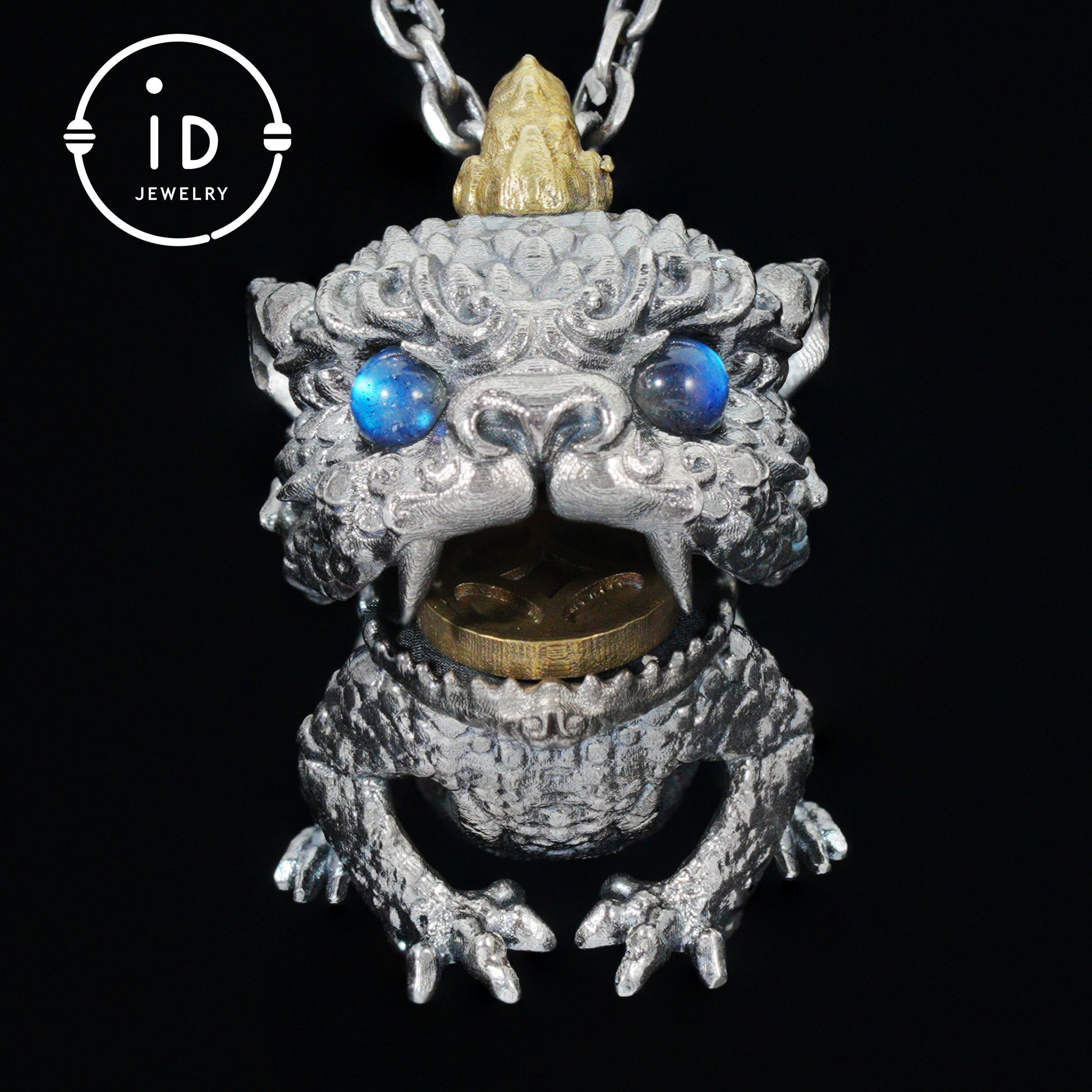 It symbolizes measure: the silver shell stands for stability, the labradorite eyes for clear vision, the copper coin for the right balance.
