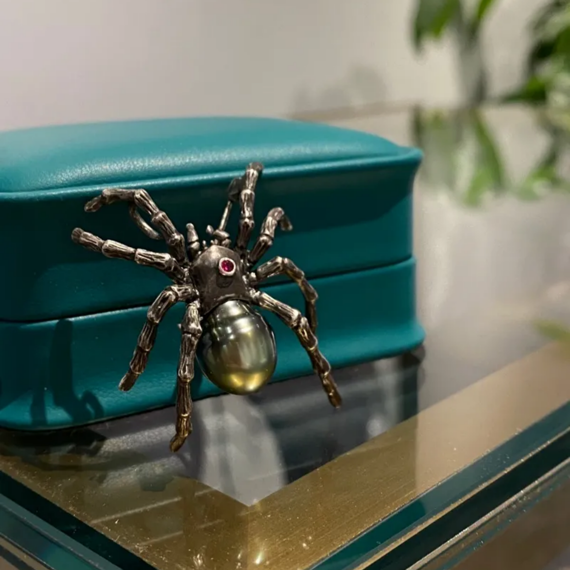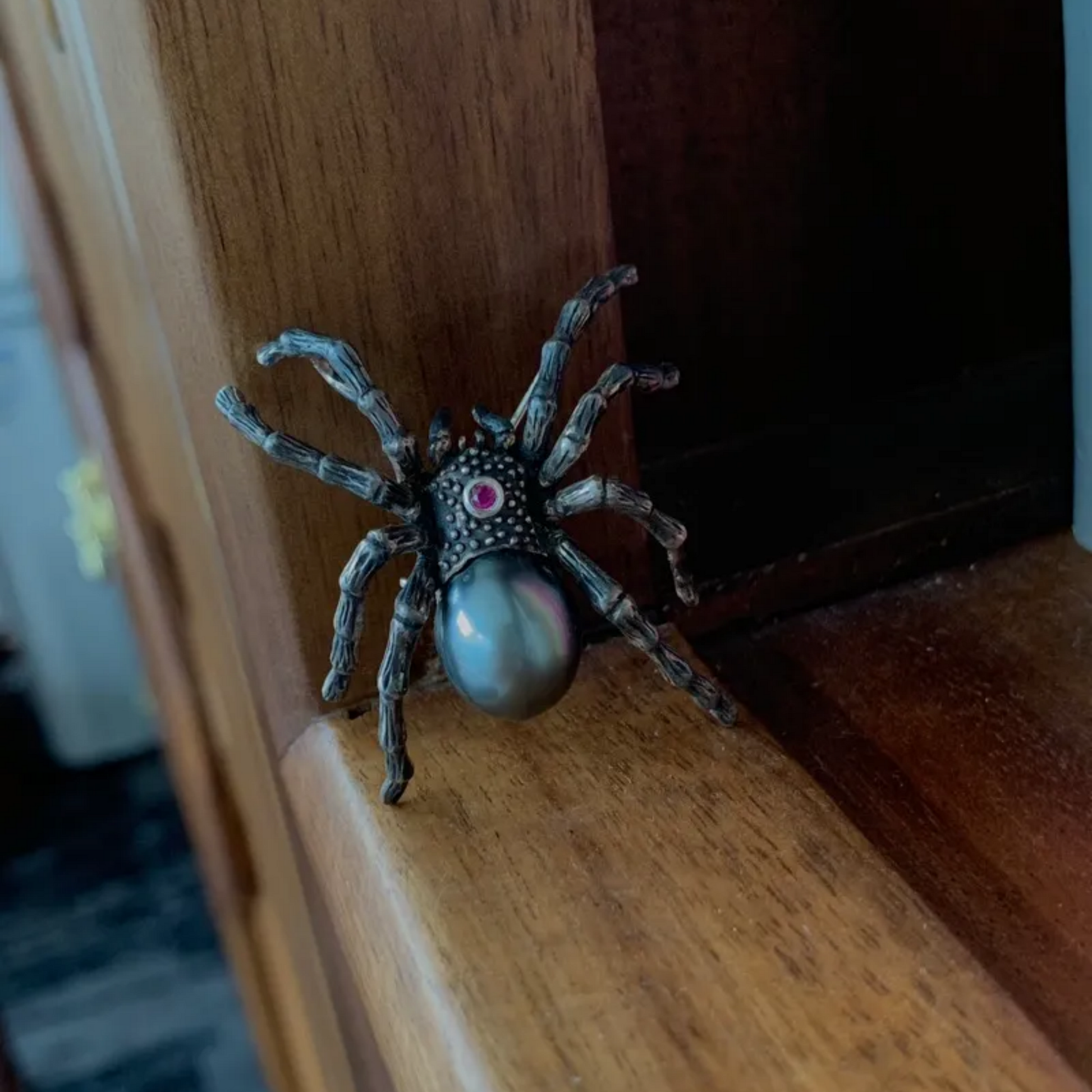 925 Silver Spider Brooch Pendant | Black Pearl Gothic Jewelry | Handmade Myth-Inspired Gift for Artists & Dark Aesthetics Lovers
