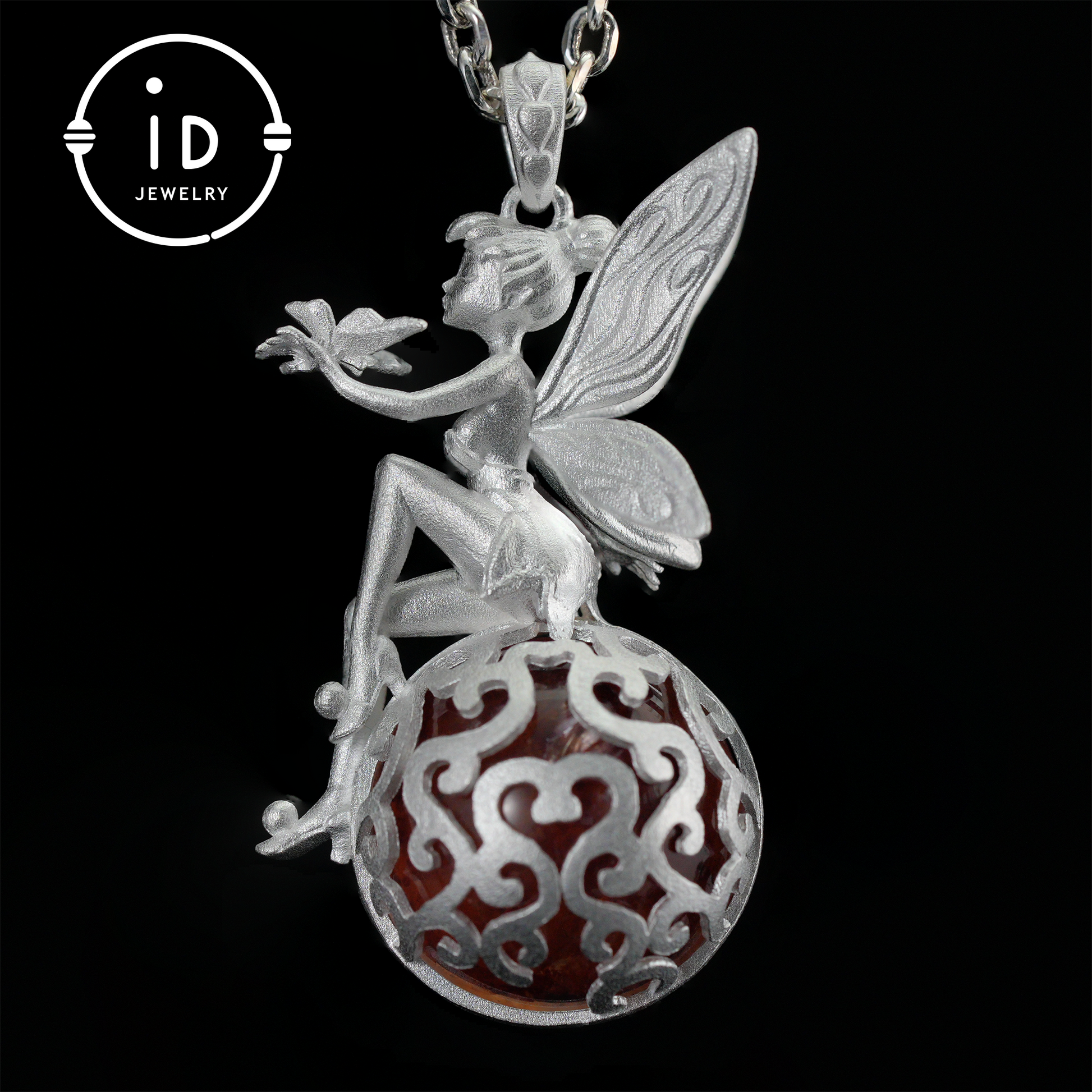 Feenanhänger mit Kristallkugel, Herbstgeist-Amulett, handgefertigter Fantasy-Schmuck, Flüsterndes Elfen-Design, von der Natur inspiriertes Andenken