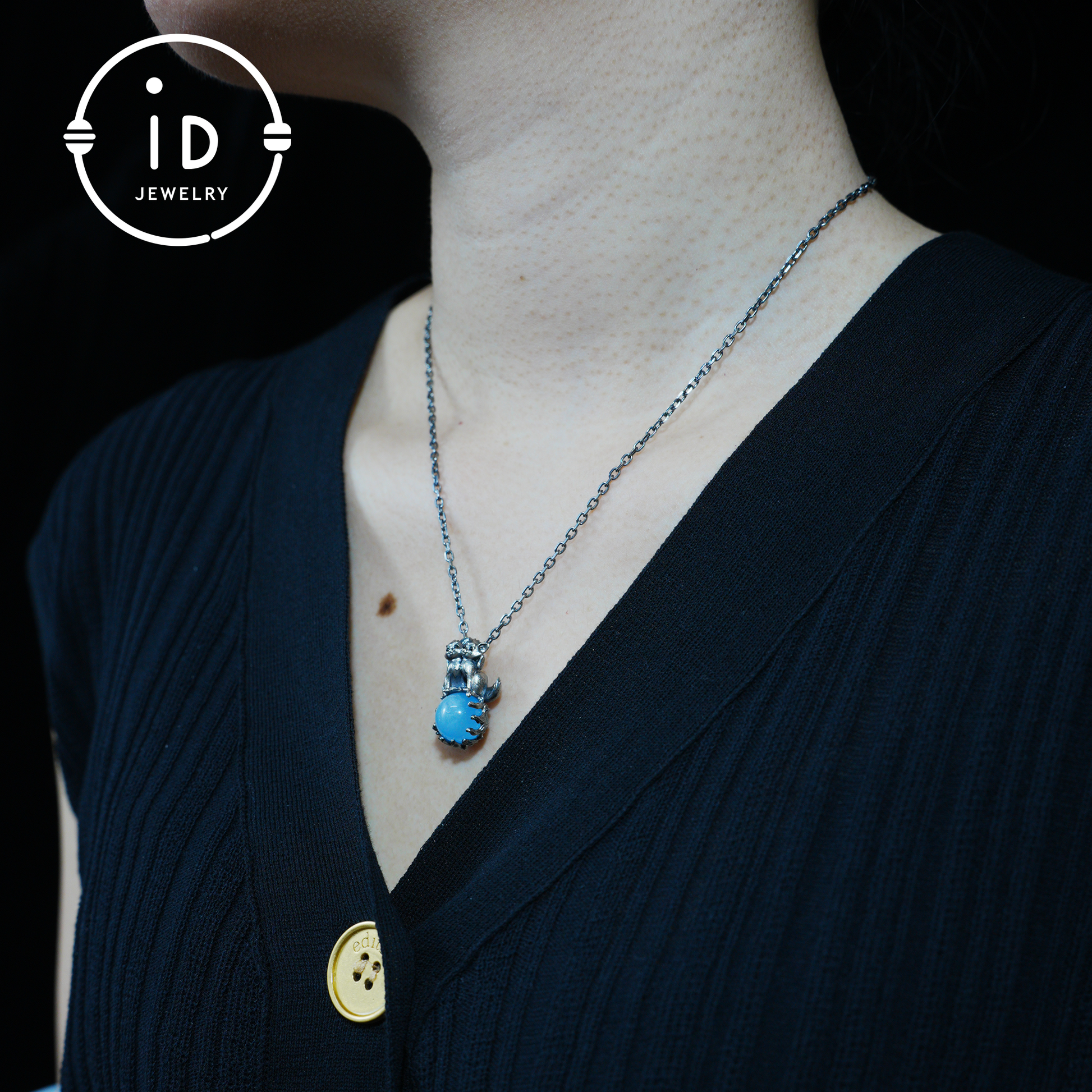 Fuchs-Totem-Anhänger mit Aquamarin – Fantasy-Tier-Amulett-Halskette, handgefertigter Geisterschmuck, Zwillingswächter-Design