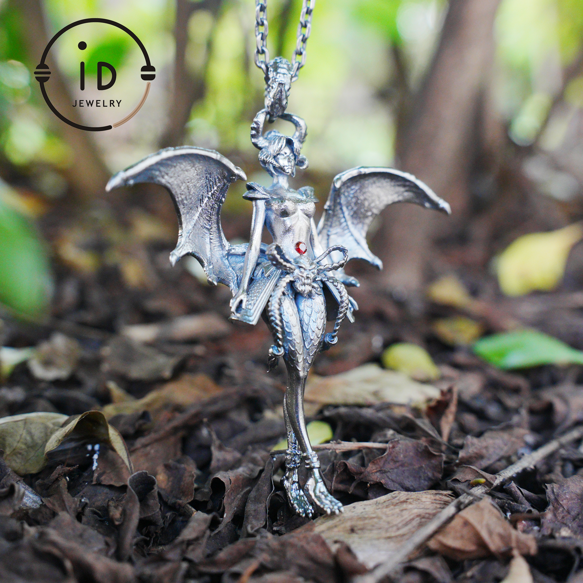 Gothic Granat Dämonengöttin Anhänger Halskette – 925 Silber Gefallener Engel Amulett – Dunkler ästhetischer okkulter Schmuck für Hexen & Cosplay