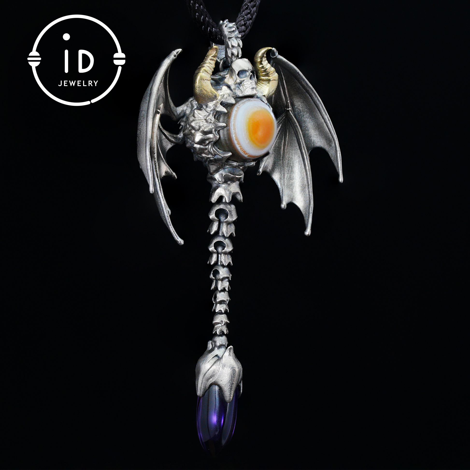 Gothic Totem Pendant | Amethyst Drop & Opal Eye | Handmade 925 Silver & Brass Necklace for Him