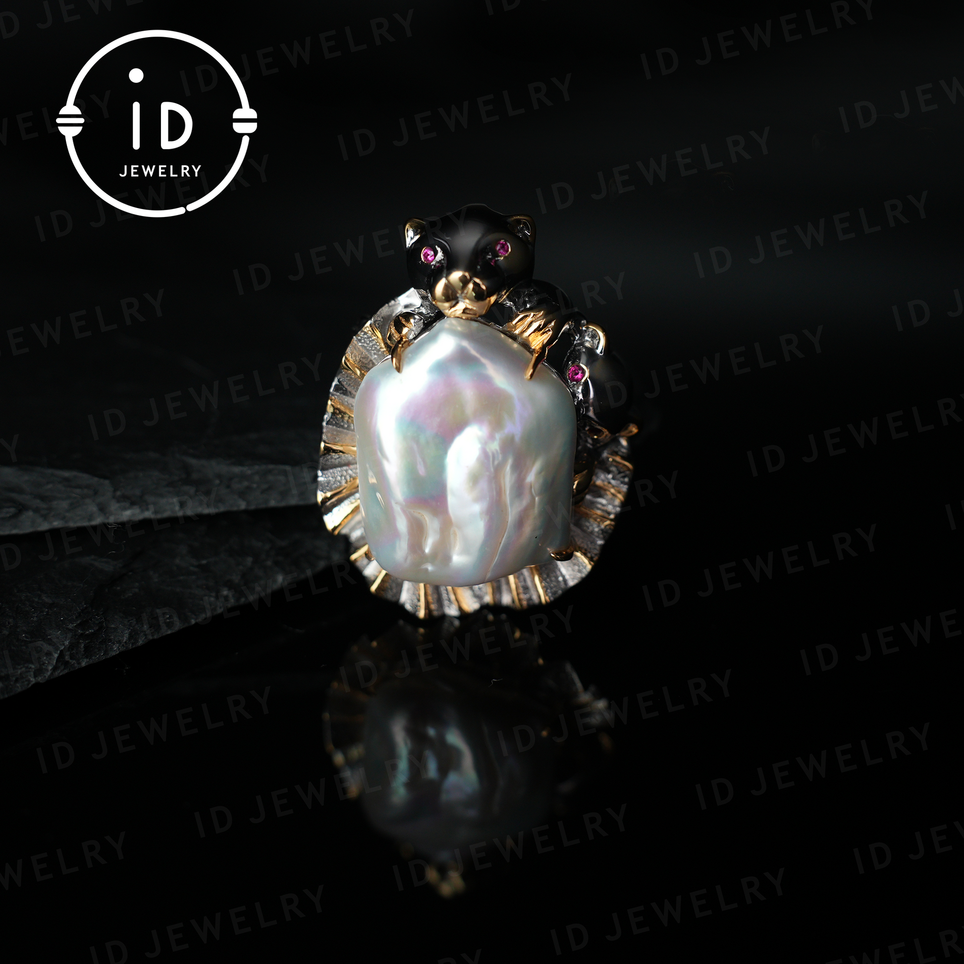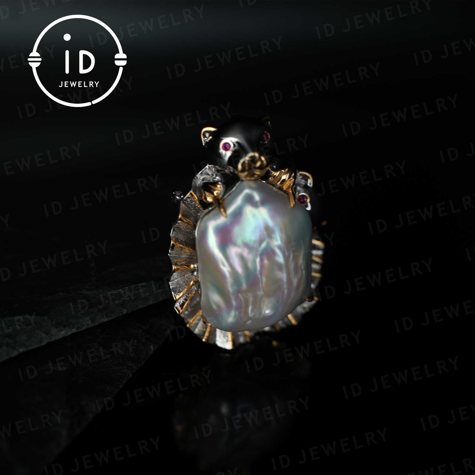 🐆 Eleganter Leoparden-Broschenanhänger – Eine kunstvolle Kombination aus einer barocken Süßwasserperle und einer liebevoll gestalteten Leopardenfigur. Das markante Design mit 18K vergoldeten Details macht dieses Schmuckstück zu einem echten Hingucker.