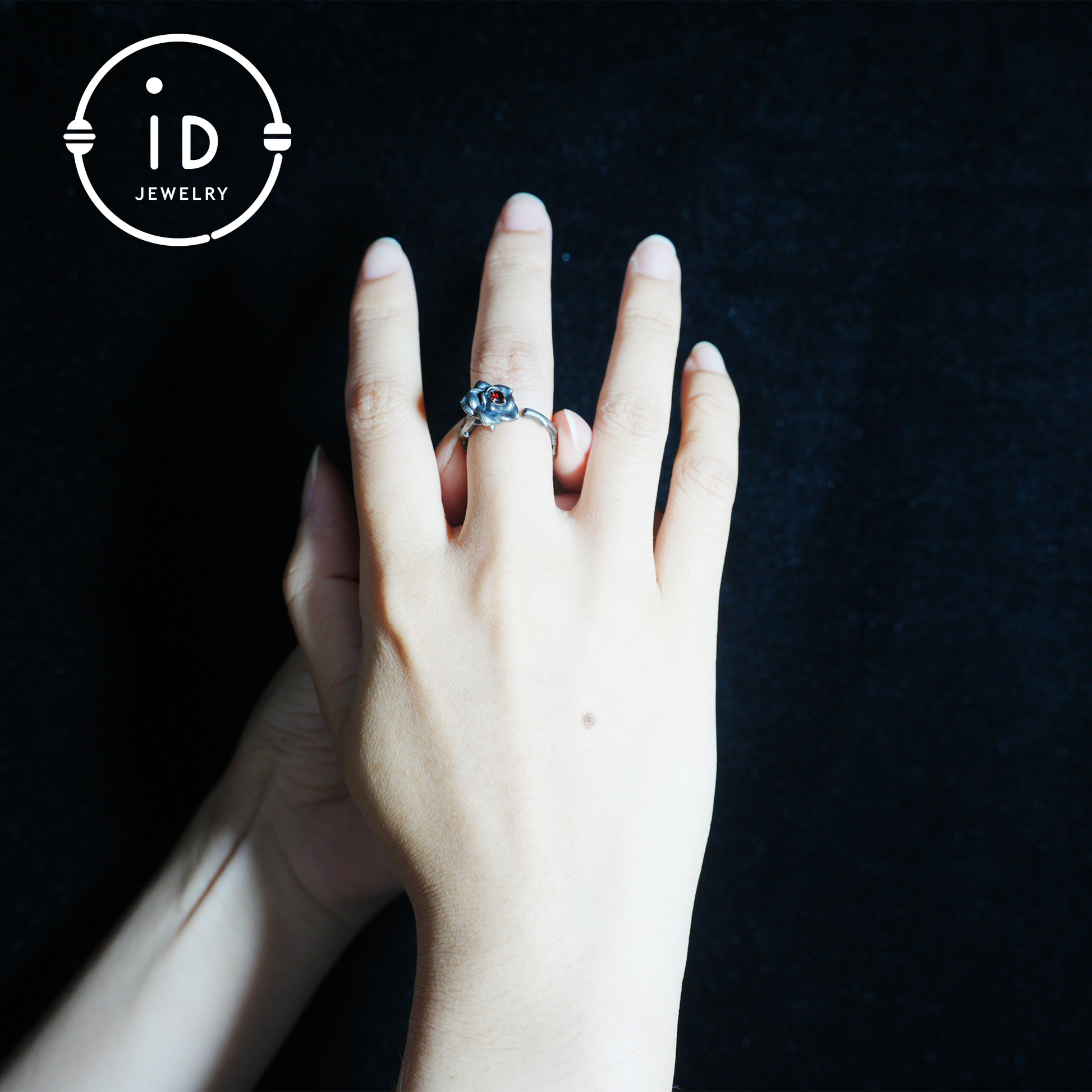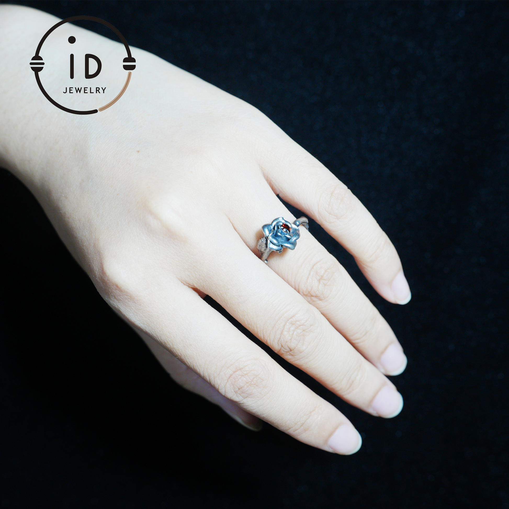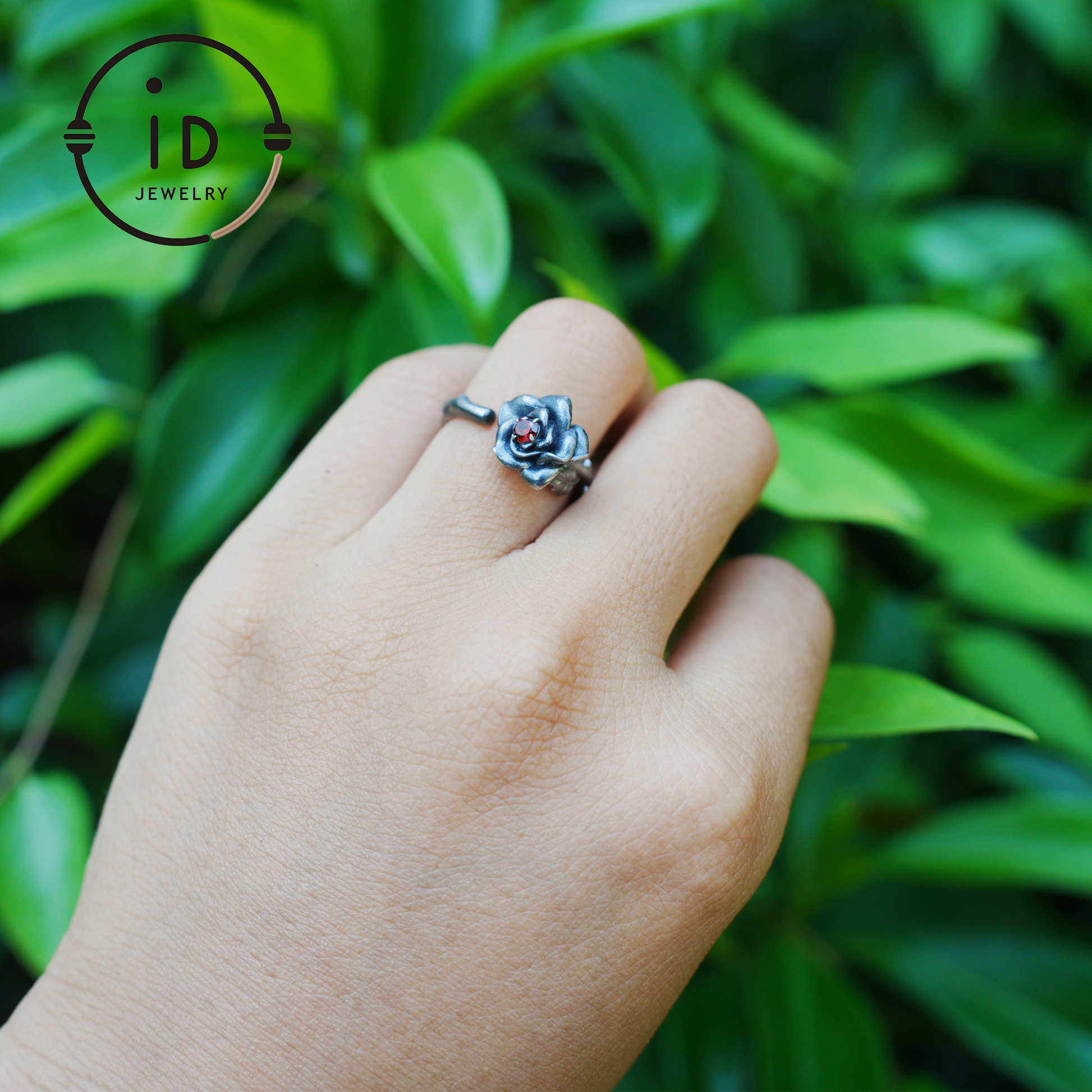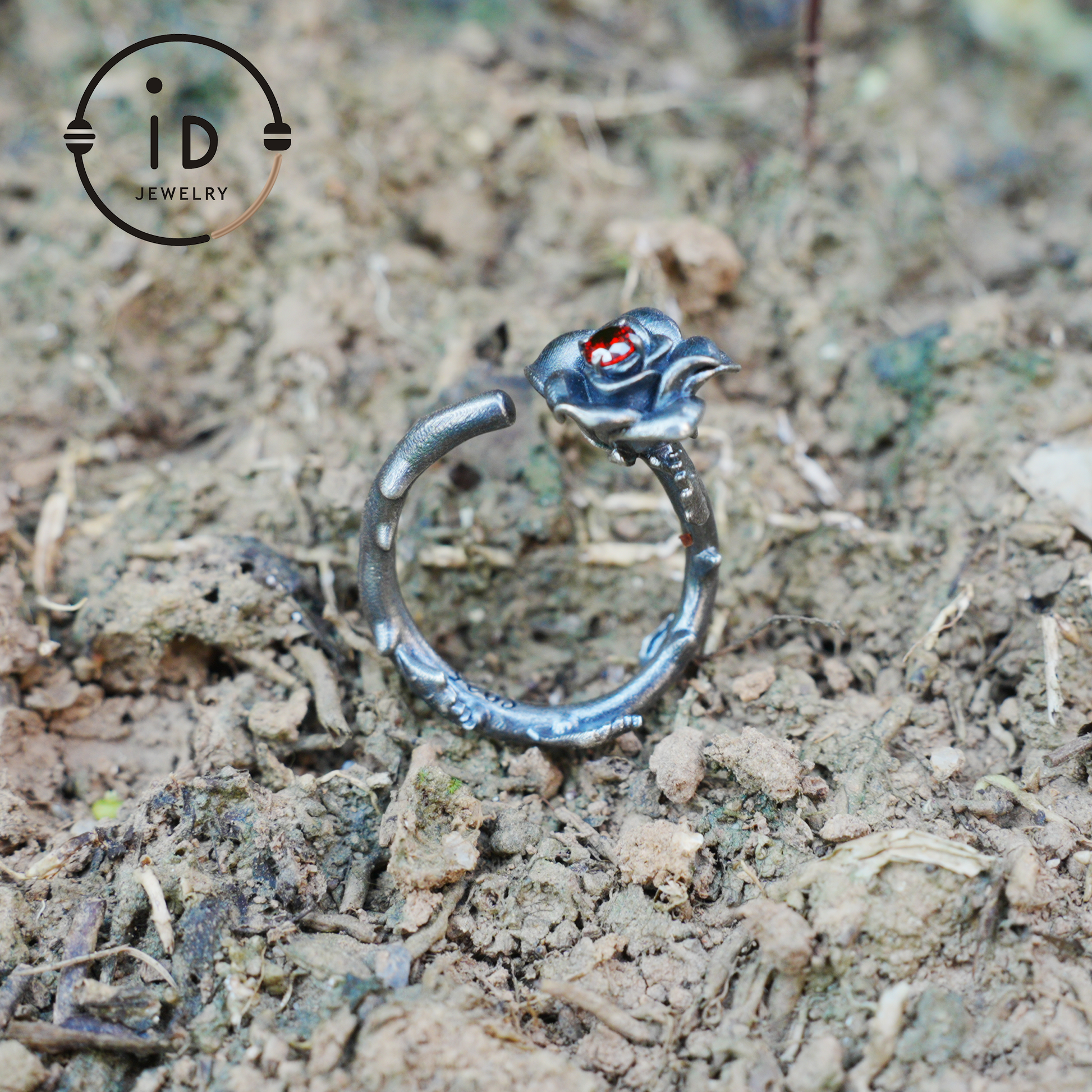 Rosenring mit blutrotem Stein, Gothic-Gelübdeschmuck, handgefertigtes Fantasy-Amulett aus Dornen und Eid, symbolisches Rosendesign