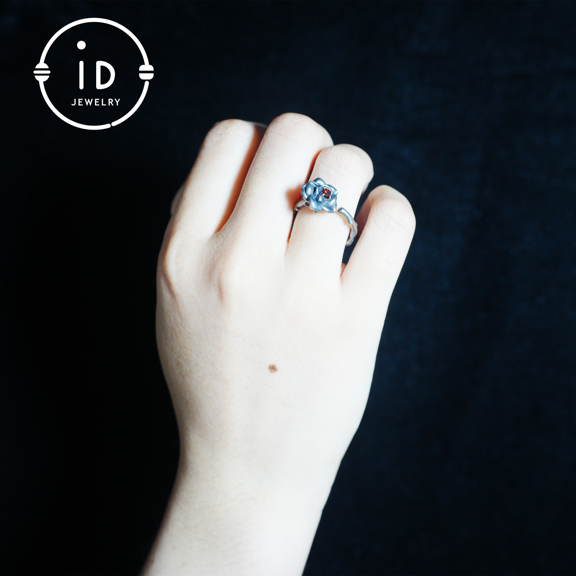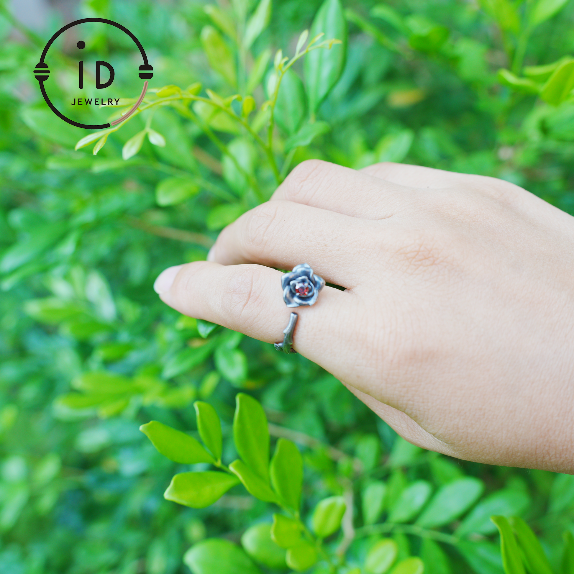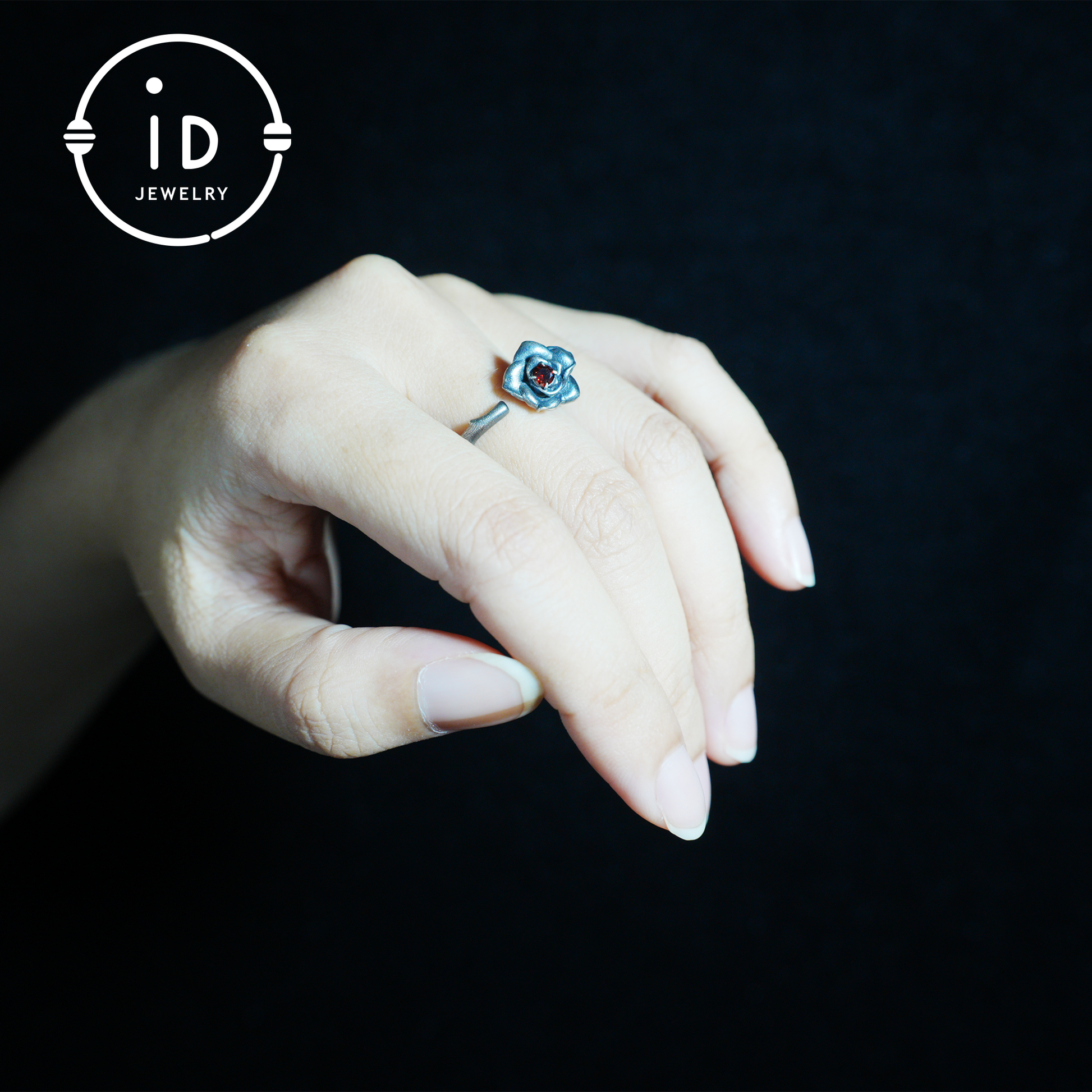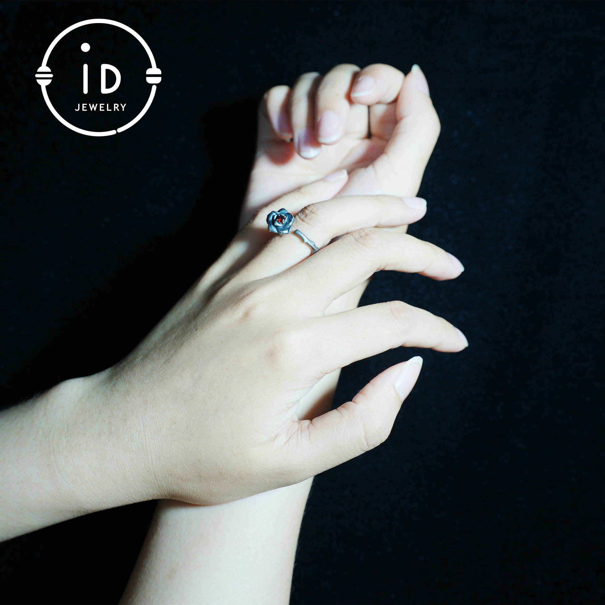 Rosenring mit blutrotem Stein, Gothic-Gelübdeschmuck, handgefertigtes Fantasy-Amulett aus Dornen und Eid, symbolisches Rosendesign